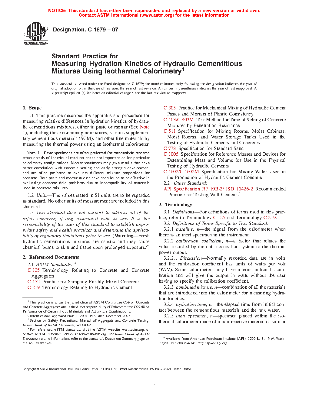 1.2 This practice does not cover the measurement of heat of hydration. Heat of hydration can be determined according to Test Method C1702.