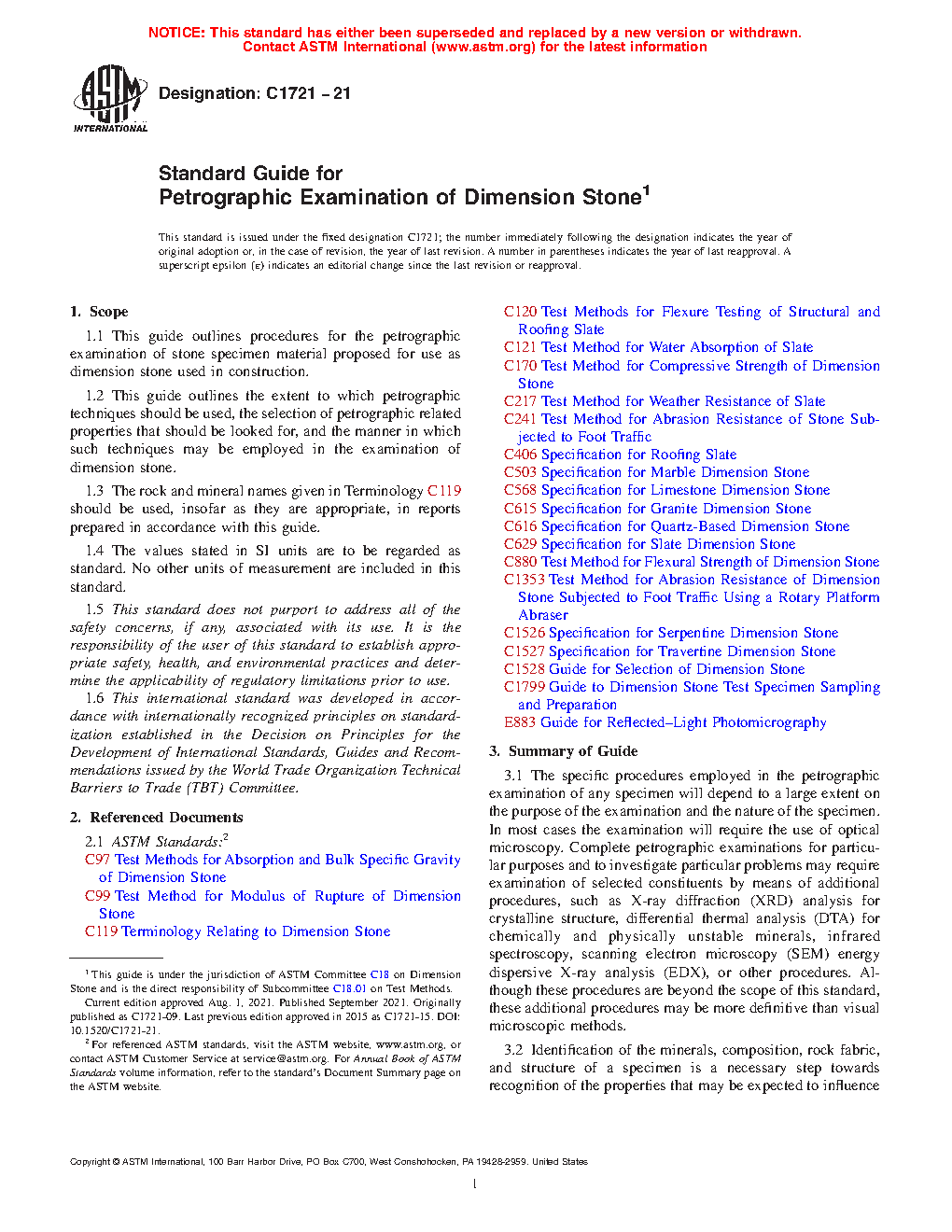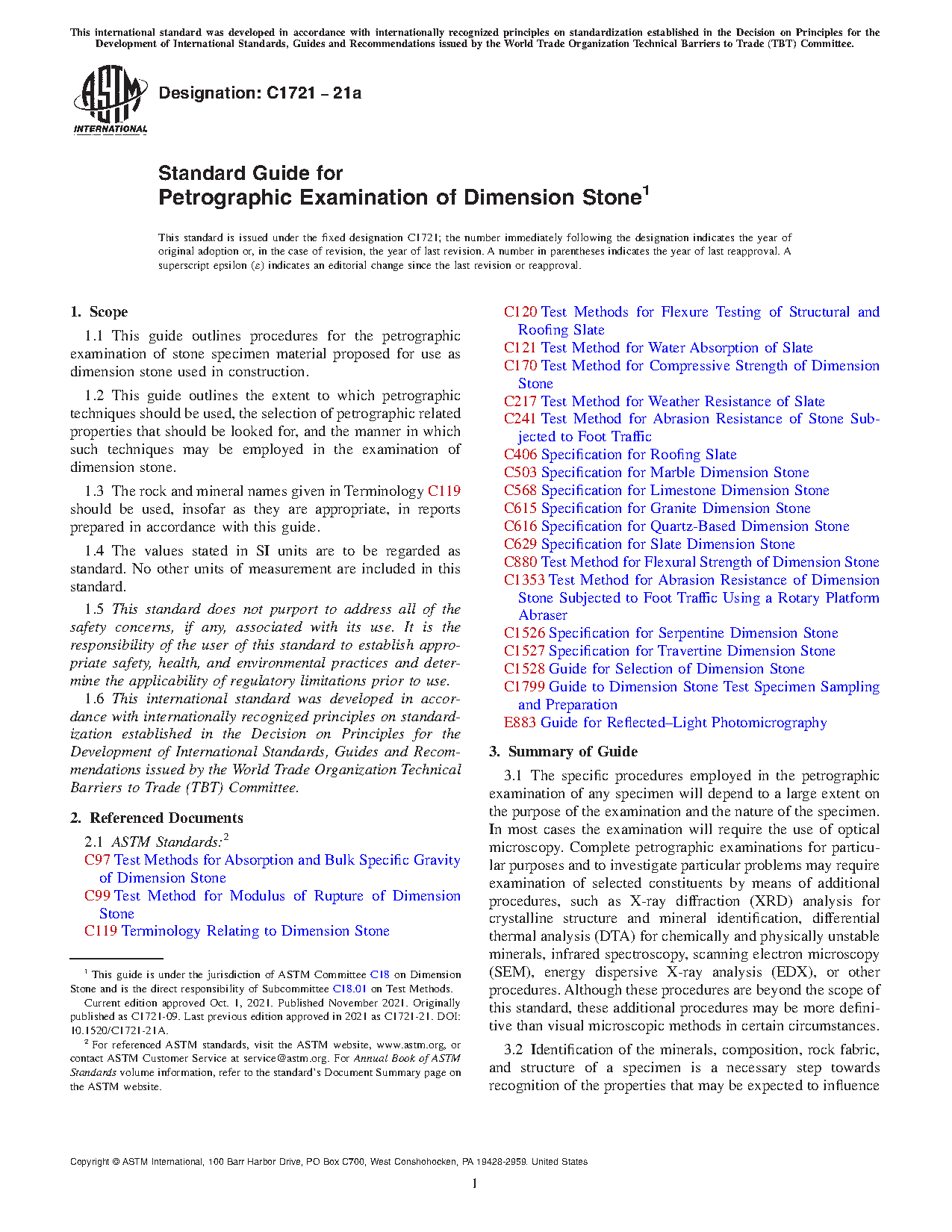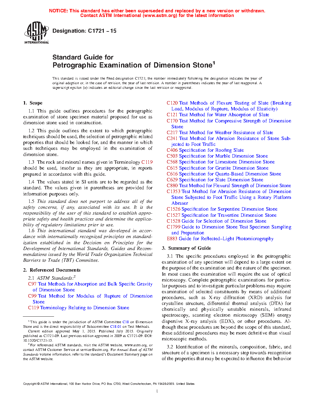 1.2 This guide outlines the extent to which petrographic techniques should be used, the selection of petrographic related properties that should be looked for, and the manner in which such techniques may be employed in the examination of dimension stone.