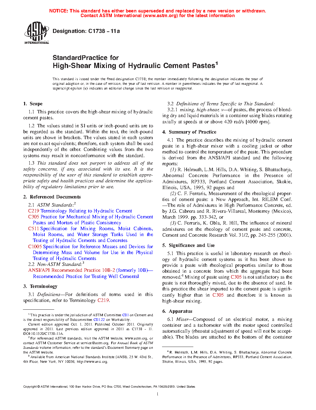 1.1 This practice covers the high-shear mixing of hydraulic cement pastes.