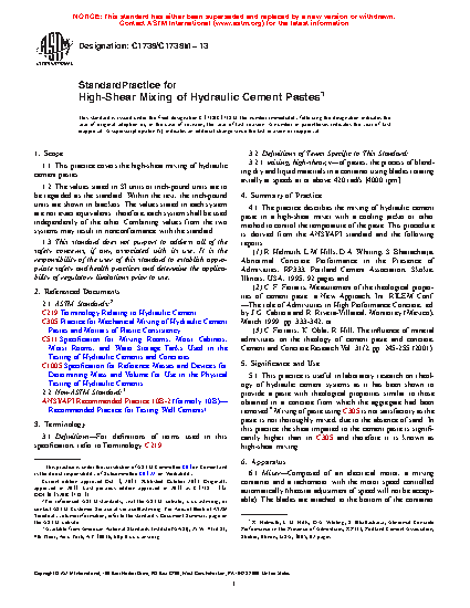 1.1 This practice covers the high-shear mixing of hydraulic cement pastes.