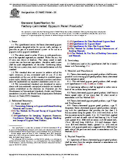 This specification establishes the requirements for factory-laminated gypsum panel products designed for use either on walls, ceilings, or partitions as part of a sound control system, or as a gypsum stud or gypsum coreboard. It covers materials and manufacture, physical properties, dimensions and tolerances, finish and appearance, sampling, inspection, rejection, certification, packaging, marking, shipping, handling, and storage.