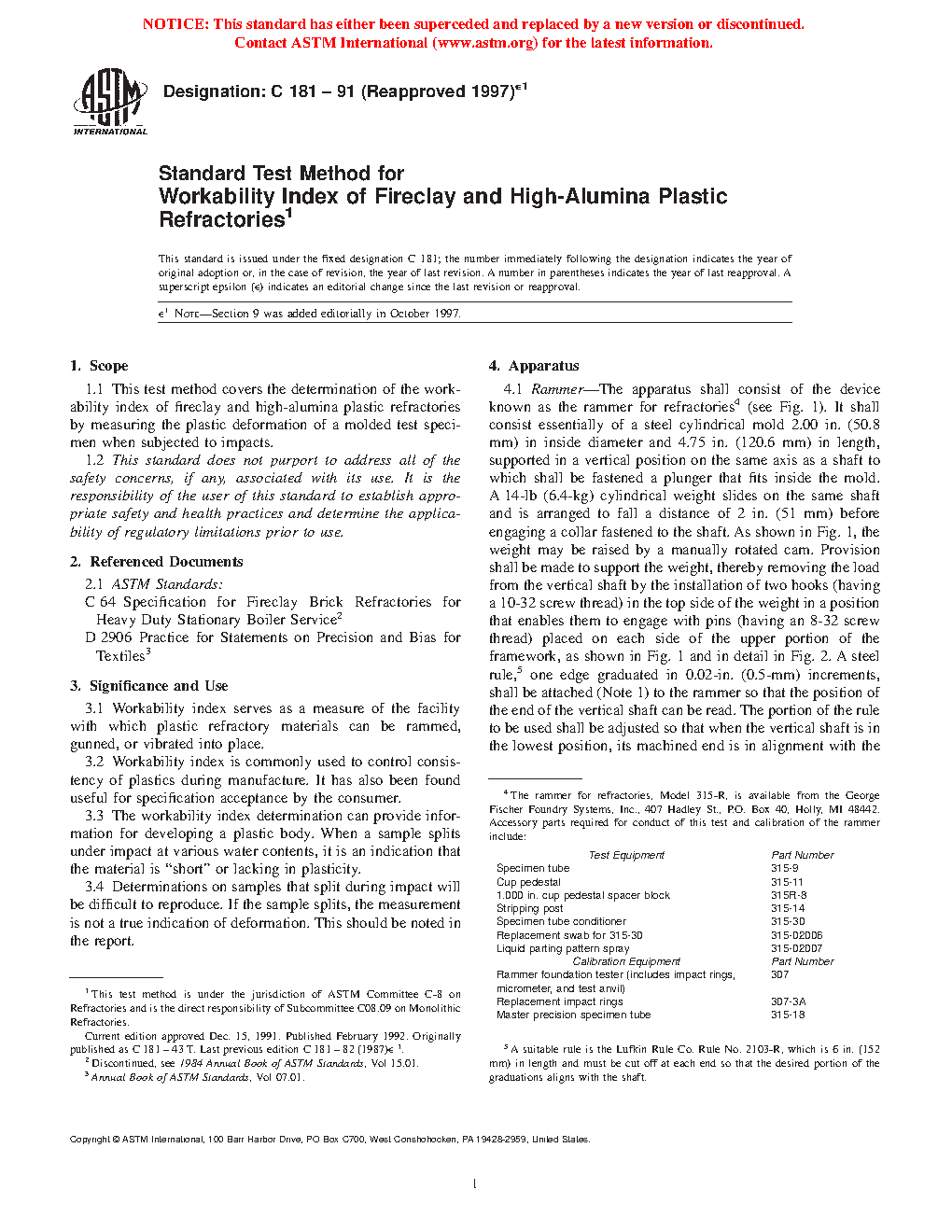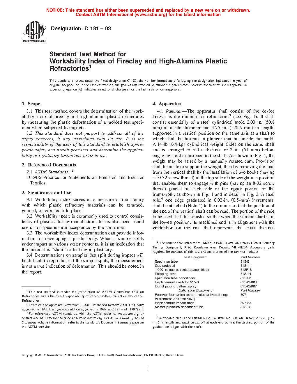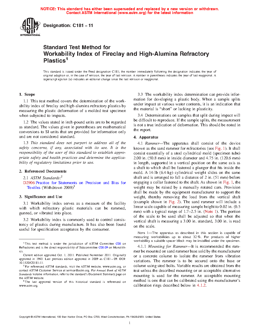 3.1 Workability index serves as a measure of the facility with which refractory plastic materials can be rammed, gunned, or vibrated into place.