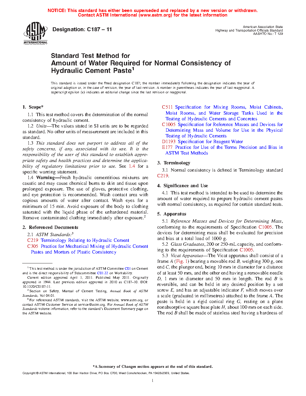 1.4 Warning—Fresh hydraulic cementitious mixtures are caustic and may cause chemical burns to skin and tissue upon prolonged exposure.2