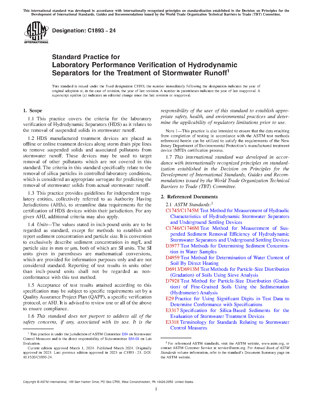 Note 1: This practice is also intended to ensure that the data resulting from completion of testing in accordance with the ASTM test methods referenced herein can be utilized to satisfy the requirements of the New Jersey Department of Environmental Protection’s manufactured treatment device (MTD) certification process.