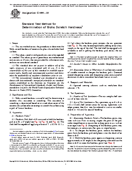 1.1 This test method covers the procedures to determine the Mohs scratch hardness of ceramic tile, glass tile, and other hard surfaces.
