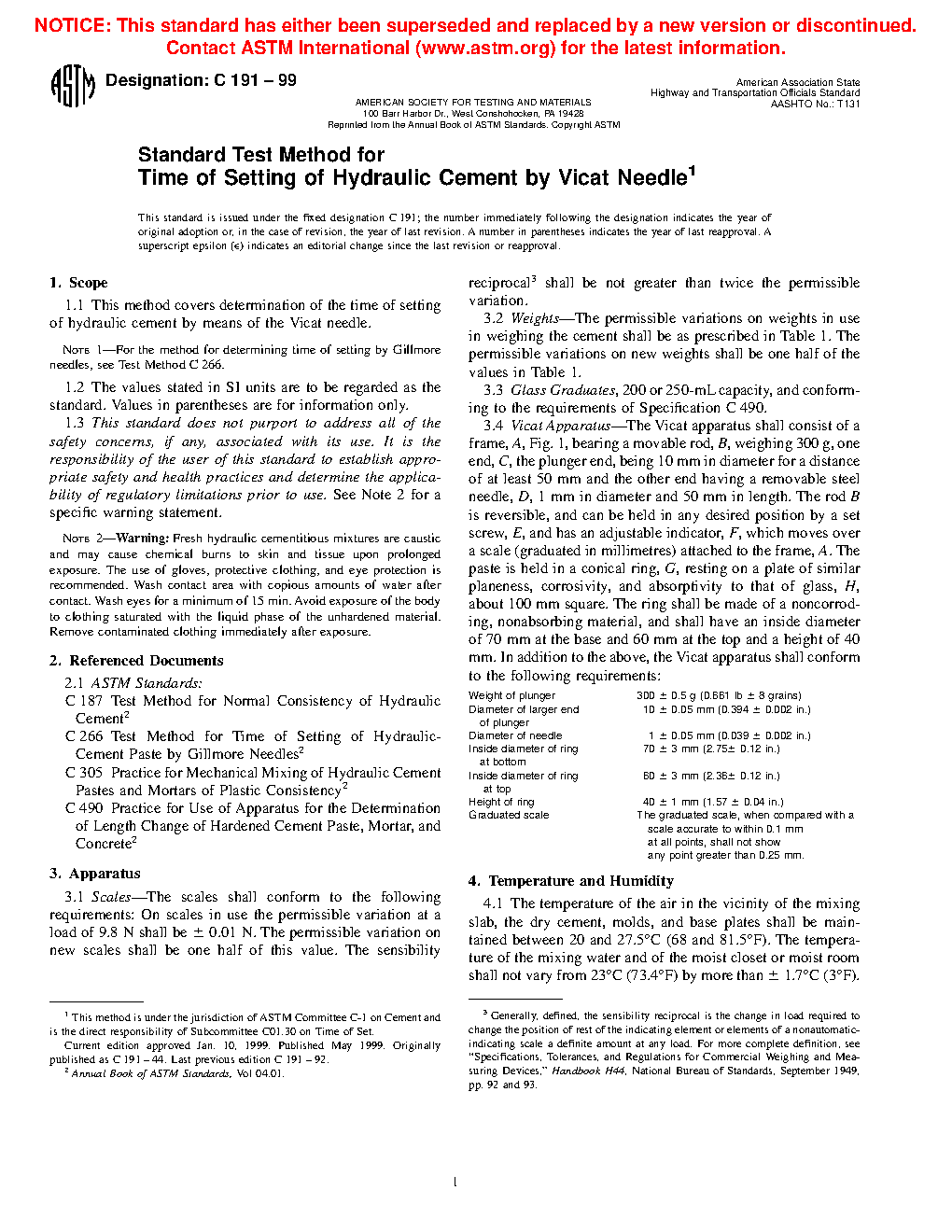 Note 1: For the method for determining the time of setting by Gillmore needles, see Test Method C266.
