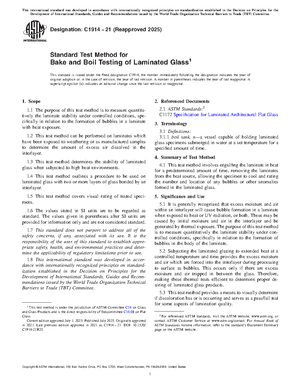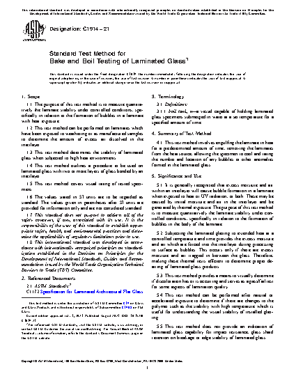 1.3 This test method determines the stability of laminated glass when subjected to high heat environments.
