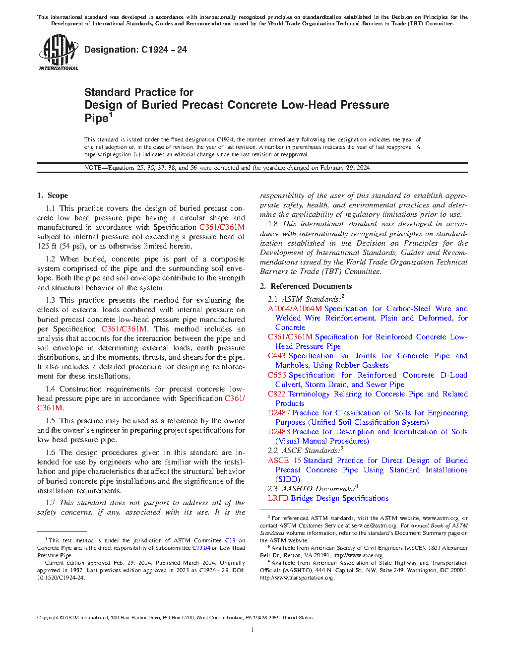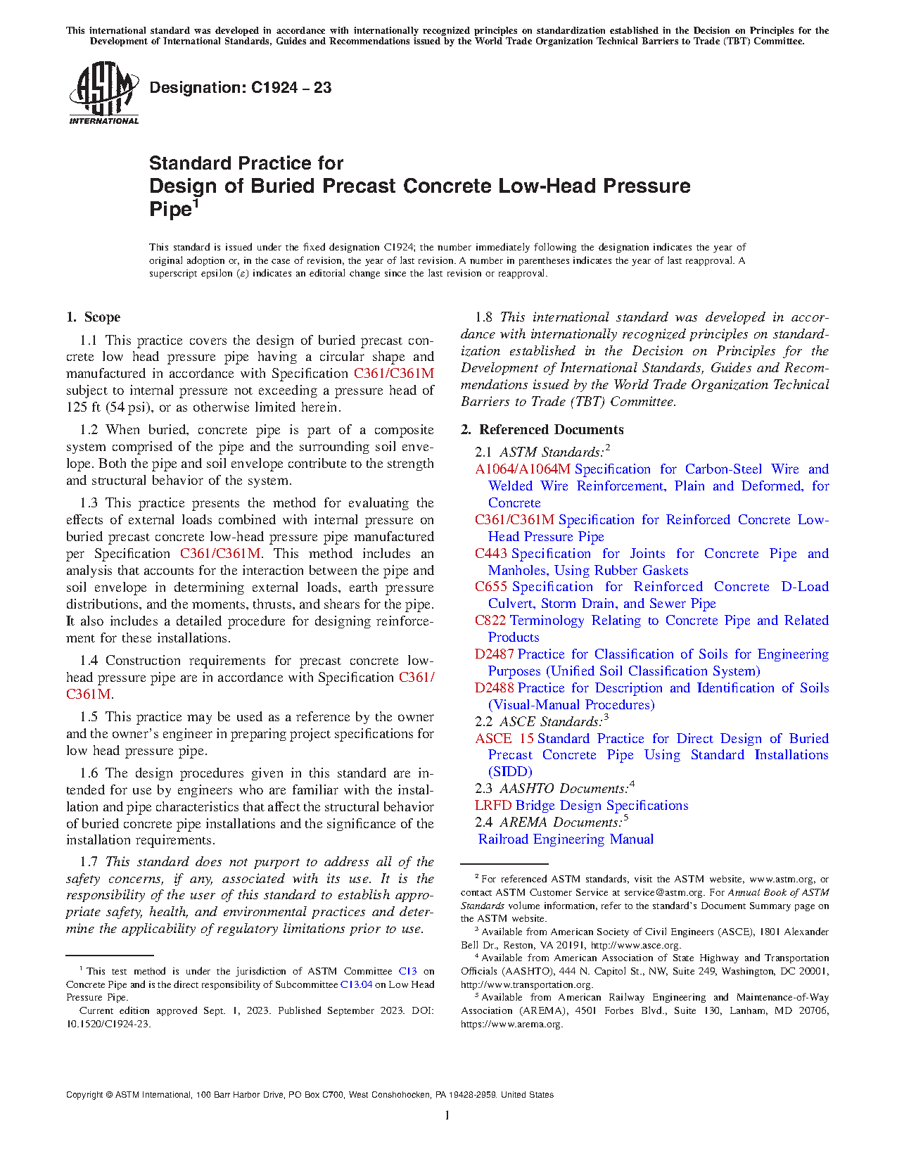 1.4 Construction requirements for precast concrete low-head pressure pipe are in accordance with Specification C361/C361M.