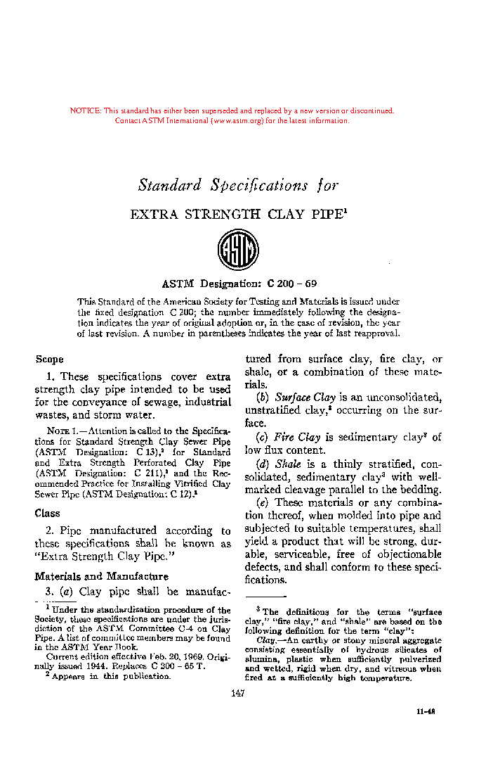 Specification for Extra Strength Clay Pipe (Withdrawn 1972)