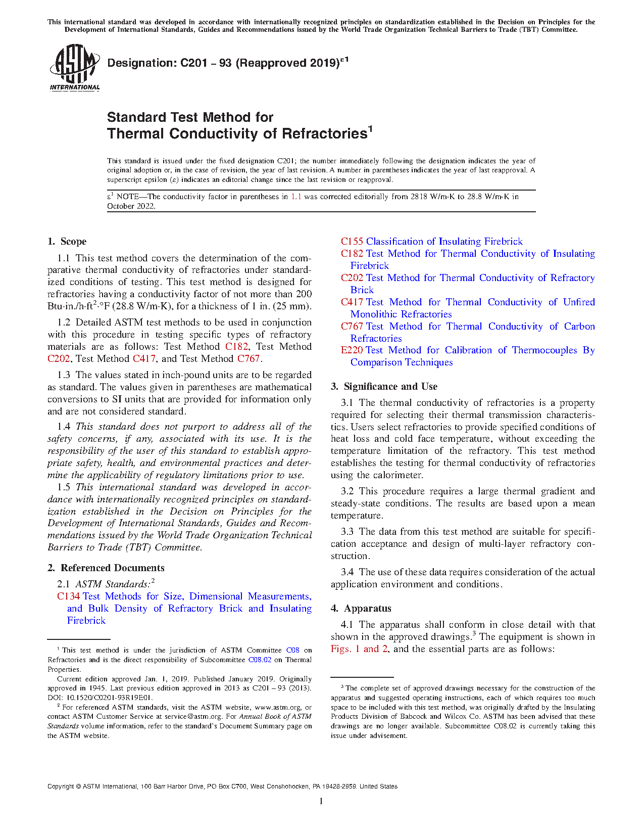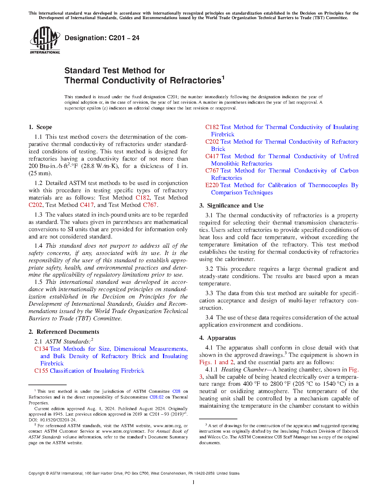 1.2 Detailed ASTM test methods to be used in conjunction with this procedure in testing specific types of refractory materials are as follows: Test Method C182, Test Method C202, Test Method C417, and Test Method C767.