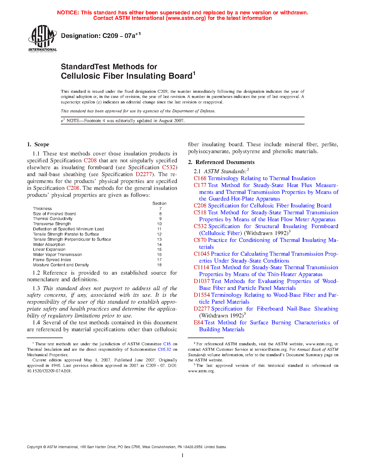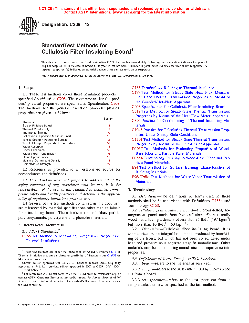 1.1 These test methods cover those insulation products in specified Specification C208. The requirements for the products’ physical properties are specified in Specification C208. The methods for the general insulation products’ physical properties are given as follows: