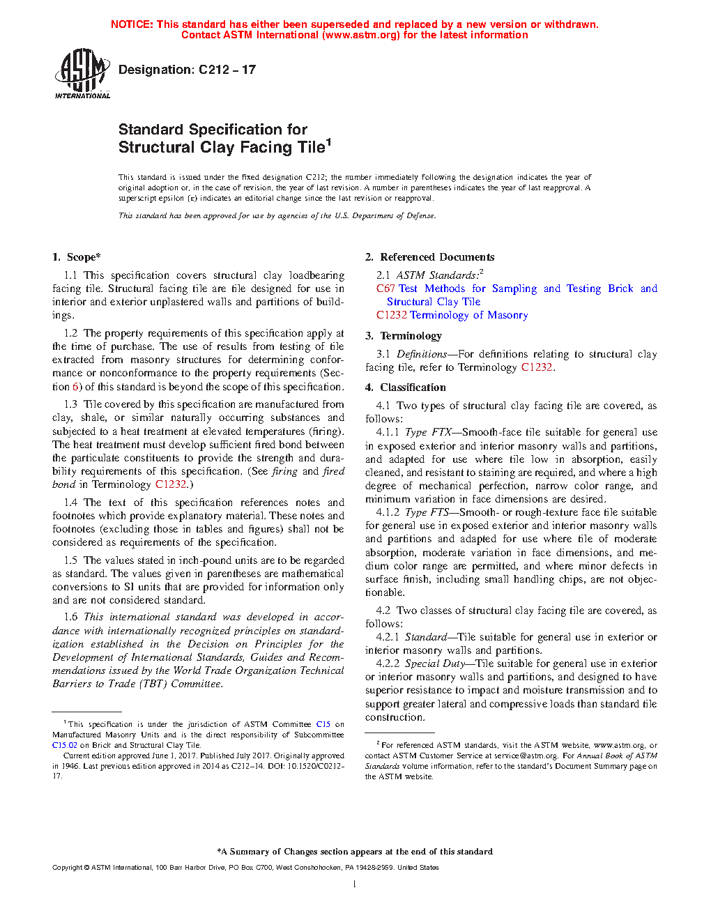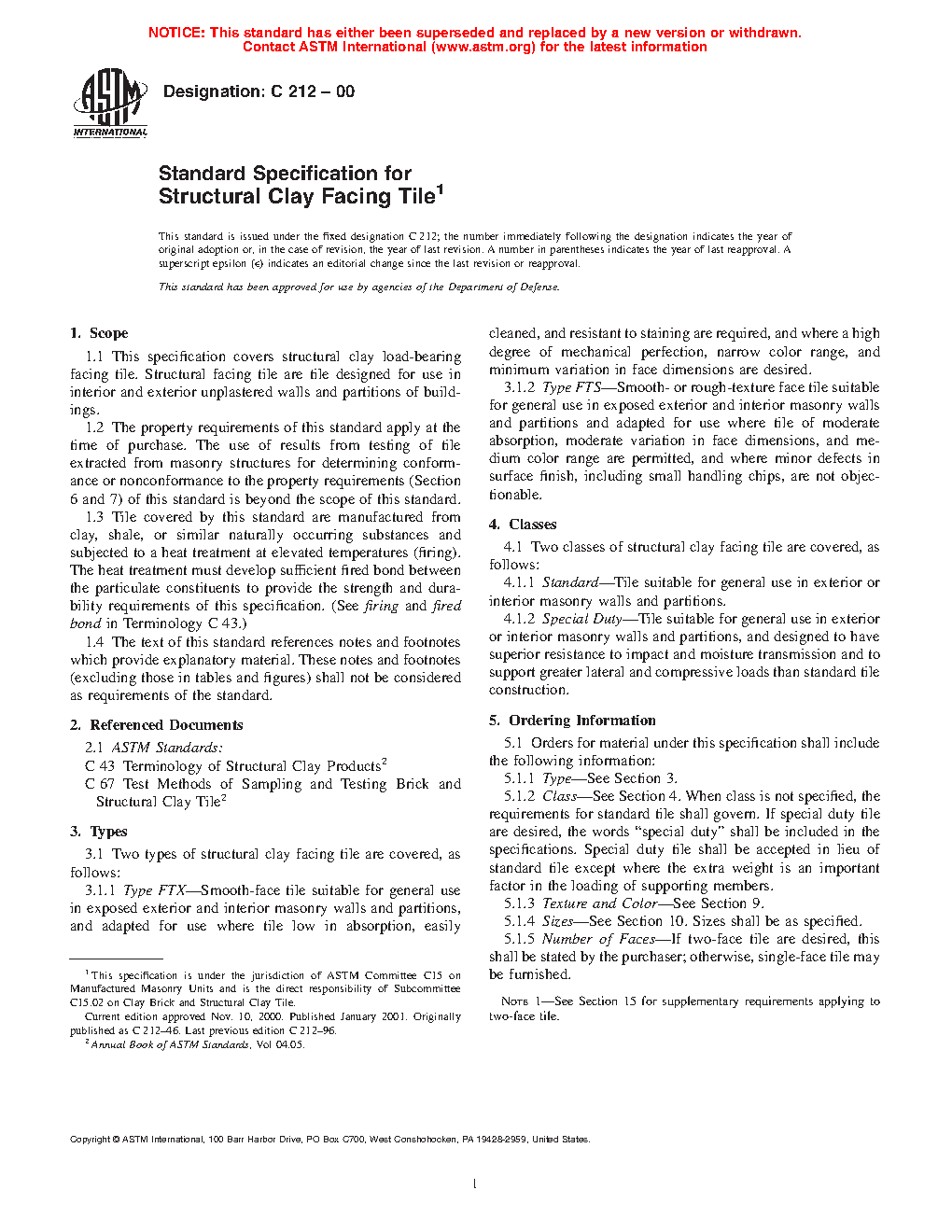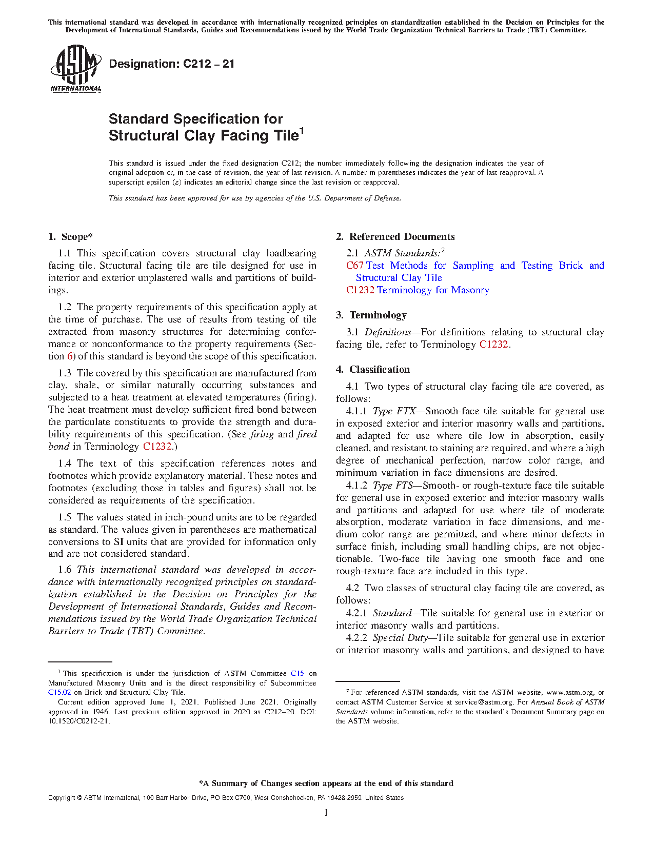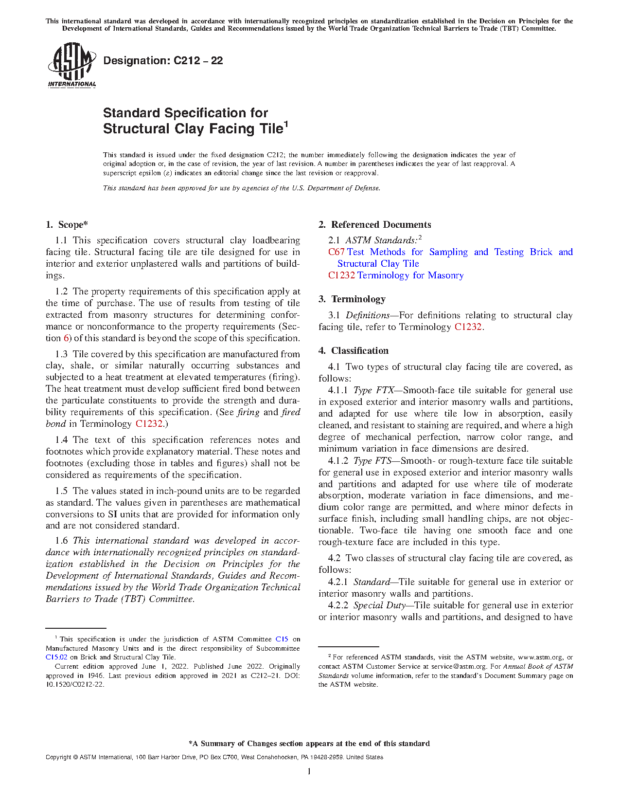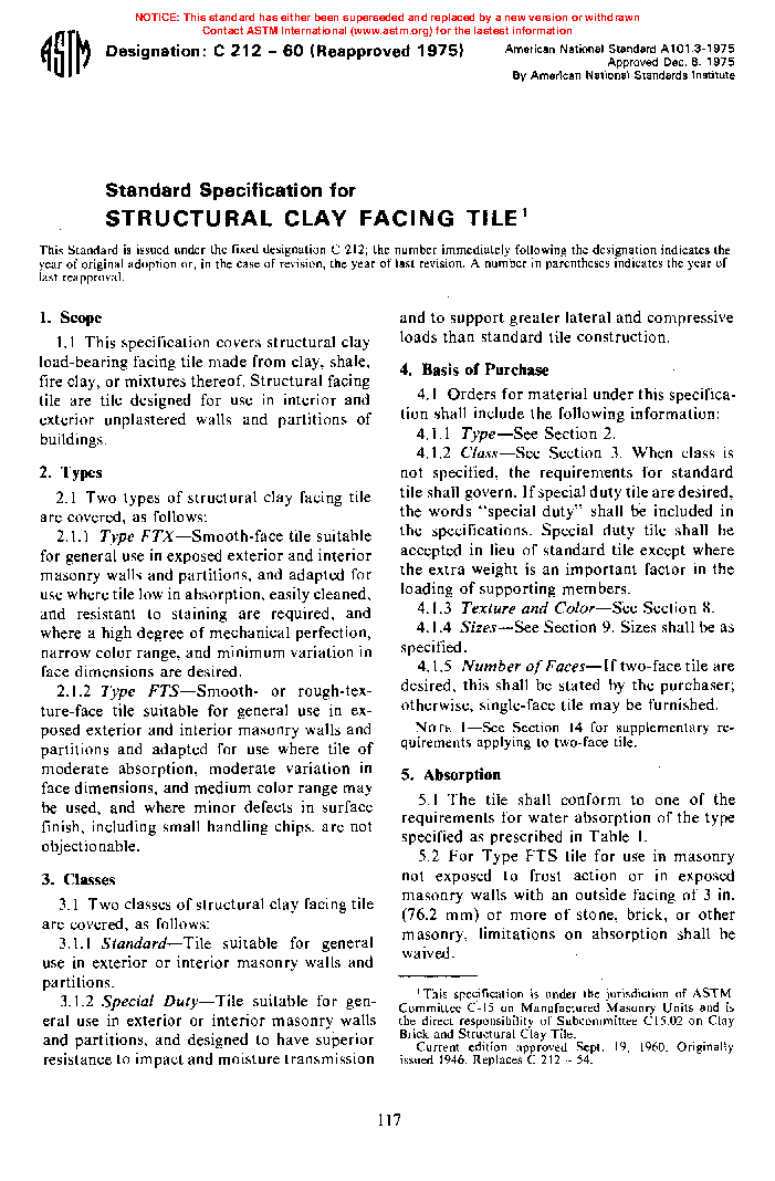 1.1 This specification covers structural clay loadbearing facing tile. Structural facing tile are tile designed for use in interior and exterior unplastered walls and partitions of buildings.