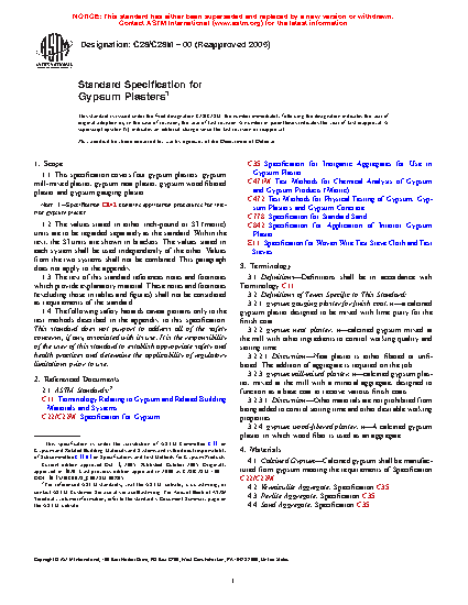 Note 1: Specification C842 contains application procedures for interior gypsum plaster.