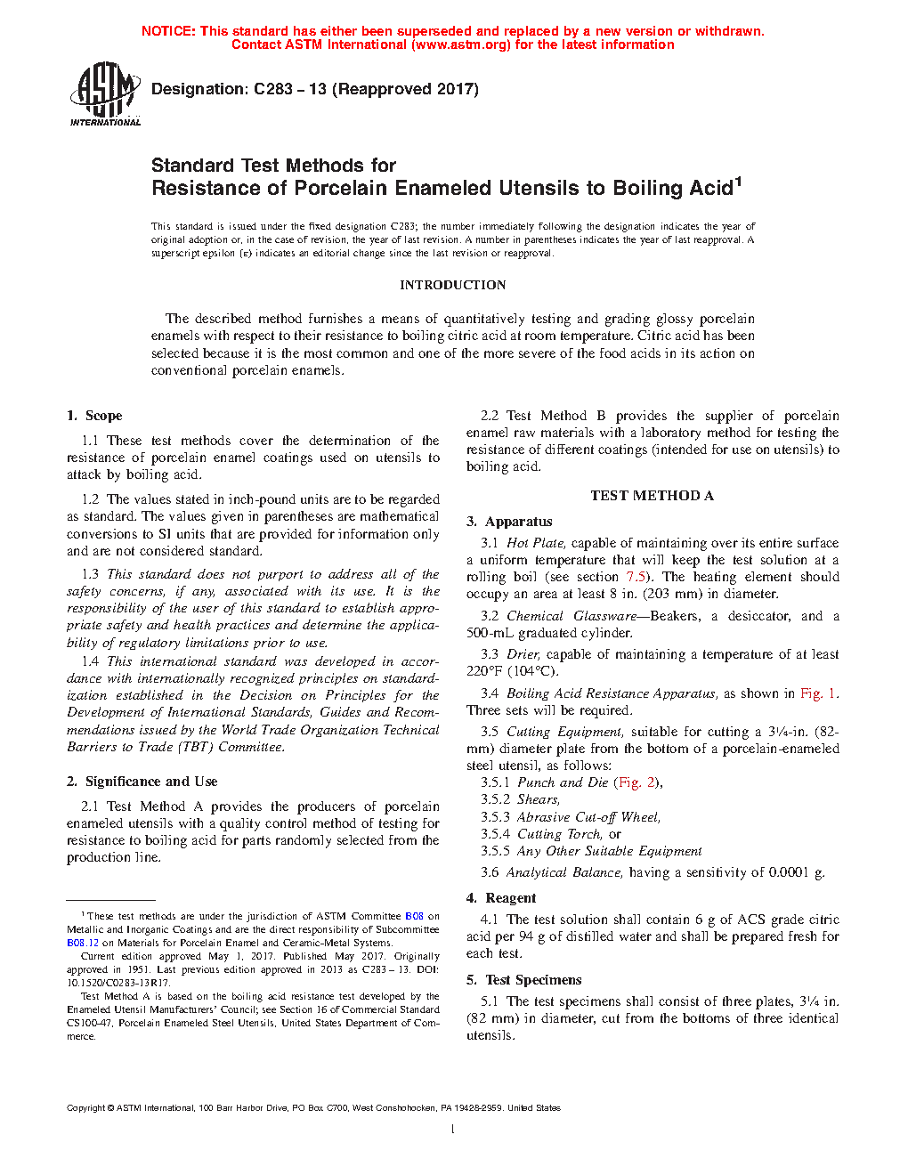 1.1 These test methods cover the determination of the resistance of porcelain enamel coatings used on utensils to attack by boiling acid.
