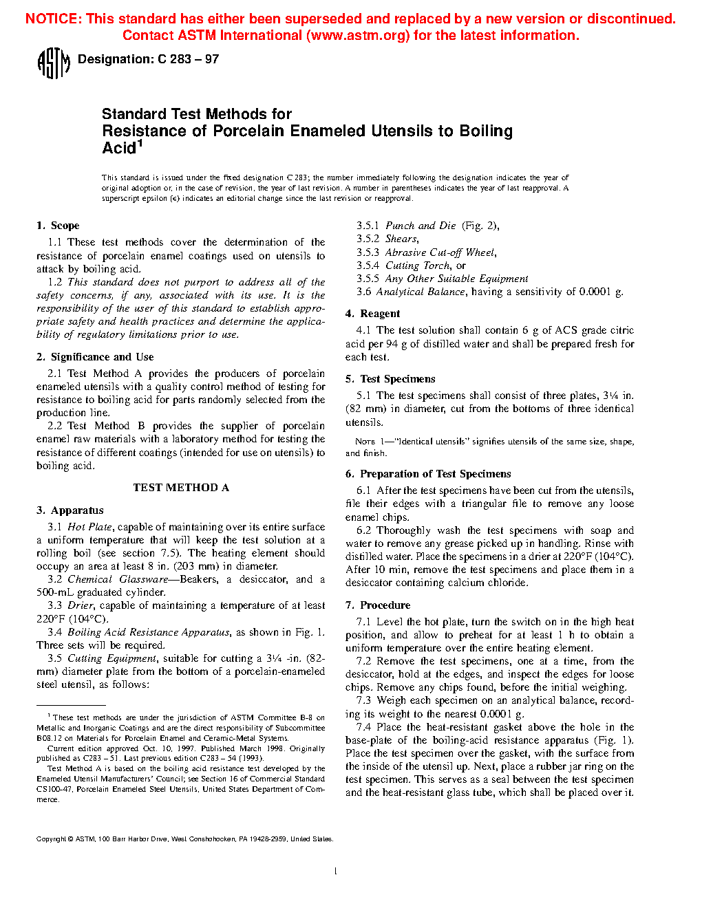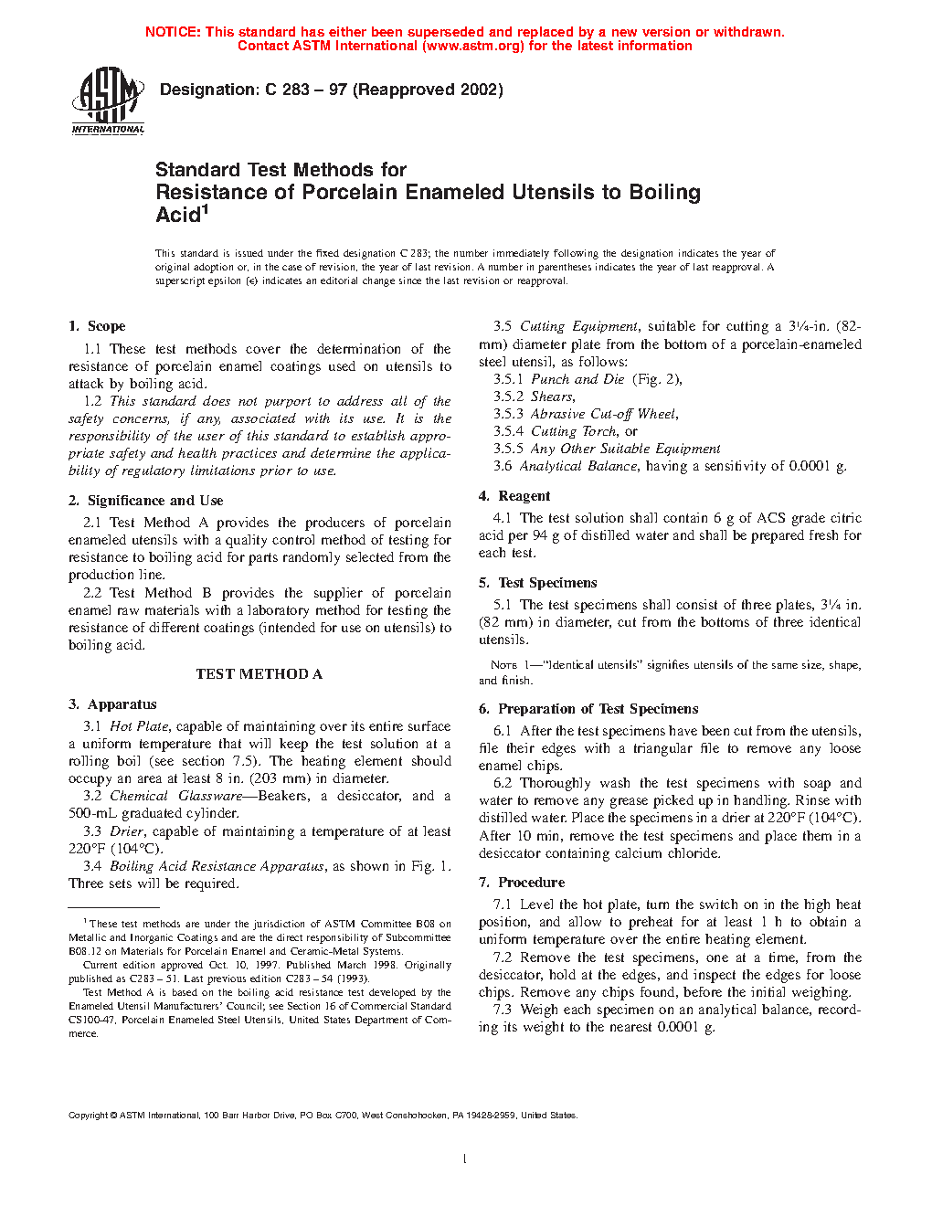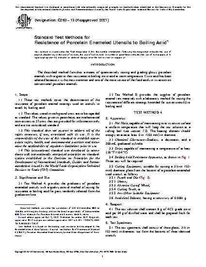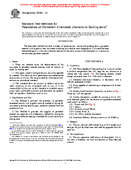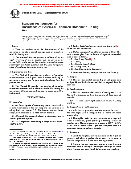 Standard Test Methods for Resistance of Porcelain Enameled Utensils to Boiling Acid