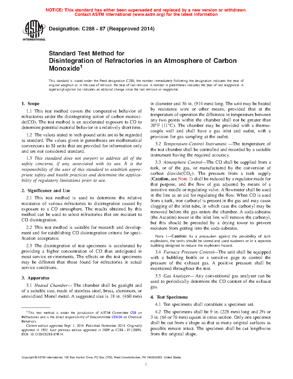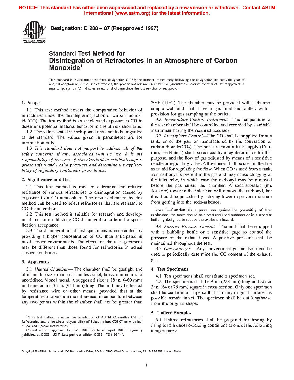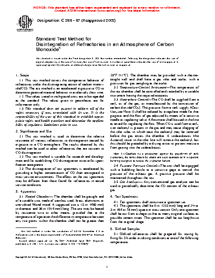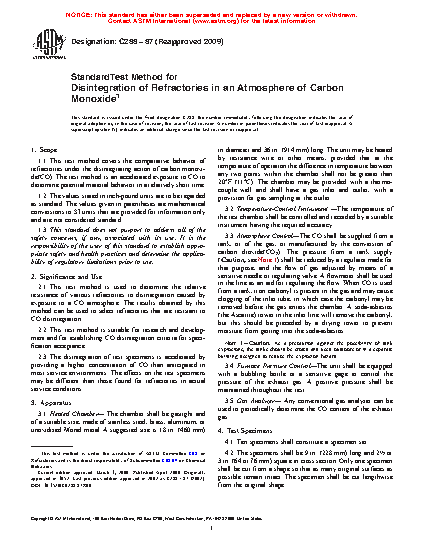 2.3 The disintegration of test specimens is accelerated by providing a higher concentration of CO than anticipated in most service environments. The effects on the test specimens may be different than those found for refractories in actual service conditions.