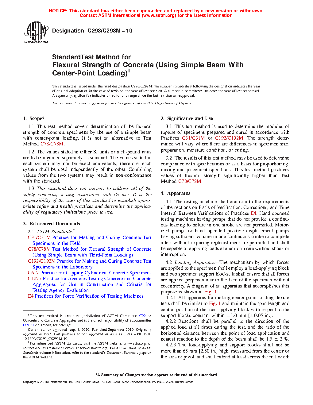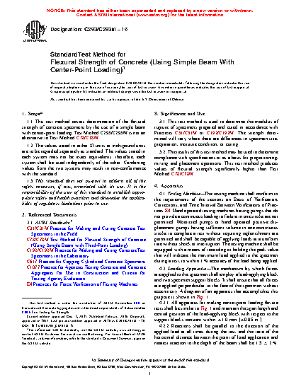 1.1 This test method covers determination of the flexural strength of concrete specimens by the use of a simple beam with center-point loading. Test Method C293/C293M is not an alternative to Test Method C78/C78M.