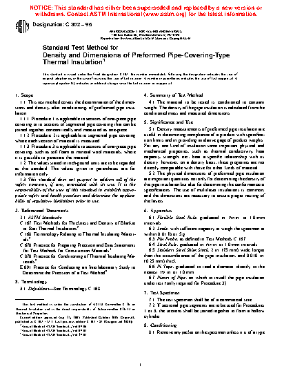 1.1.1 Procedure A is applicable to sections of one-piece pipe covering or to sections of segmental pipe covering that can be joined together concentrically and measured as one-piece.