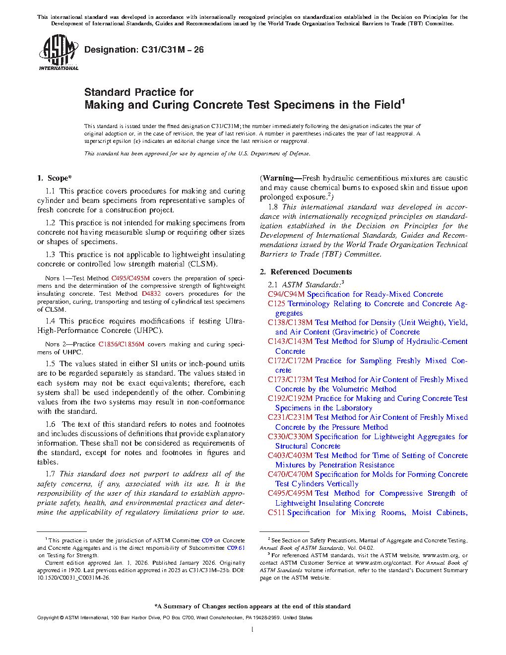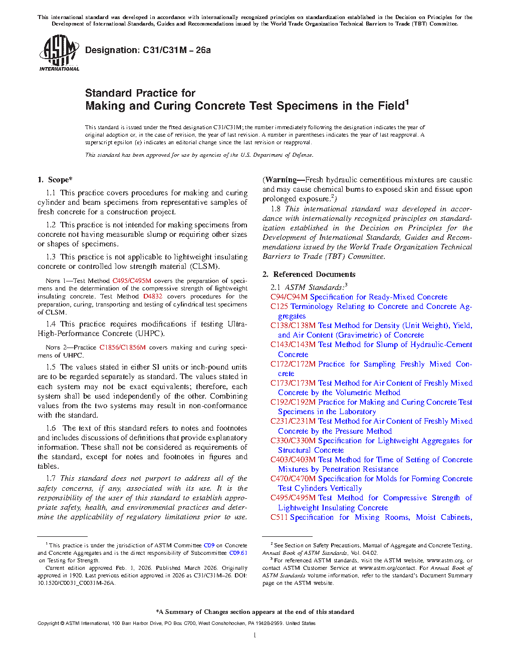 ASTM C31/C31M-22