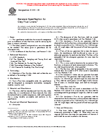 1.3 For installation of clay flue liners, see Practice C1283.