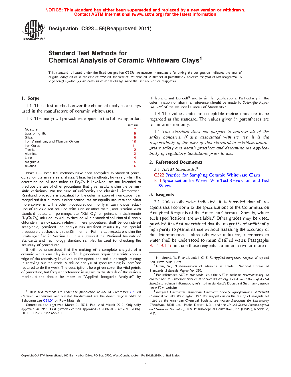 1.1 These test methods cover the chemical analysis of clays employed in the manufacture of ceramic whitewares.