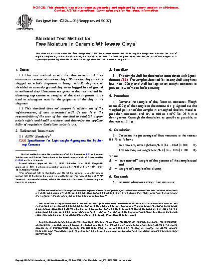 Standard Test Method for Free Moisture in Ceramic Whiteware Clays