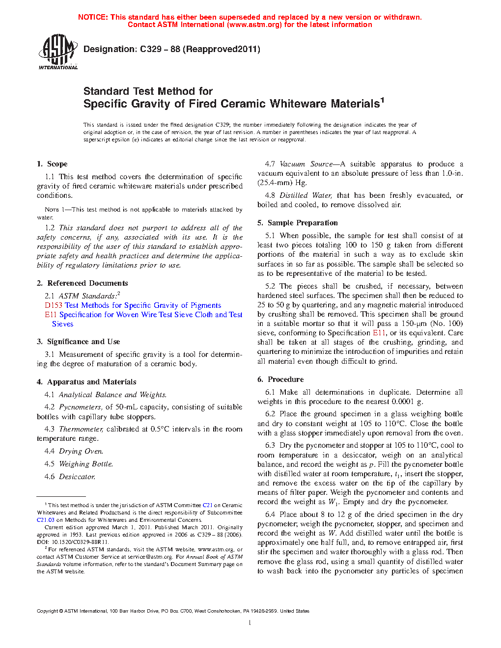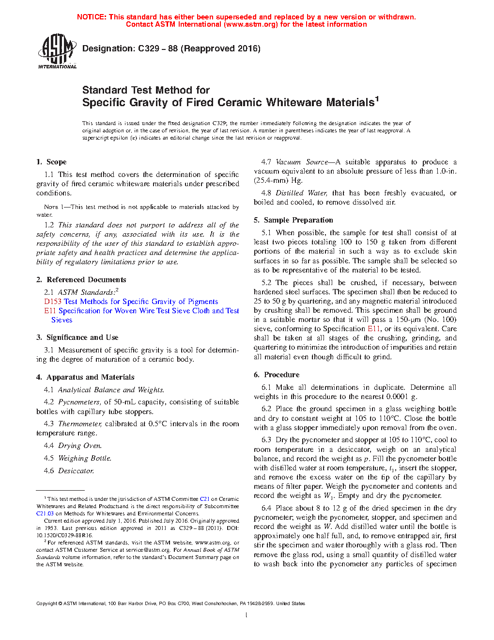 ASTM C329-88(2024)