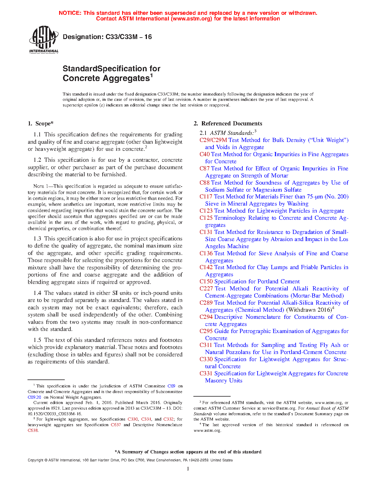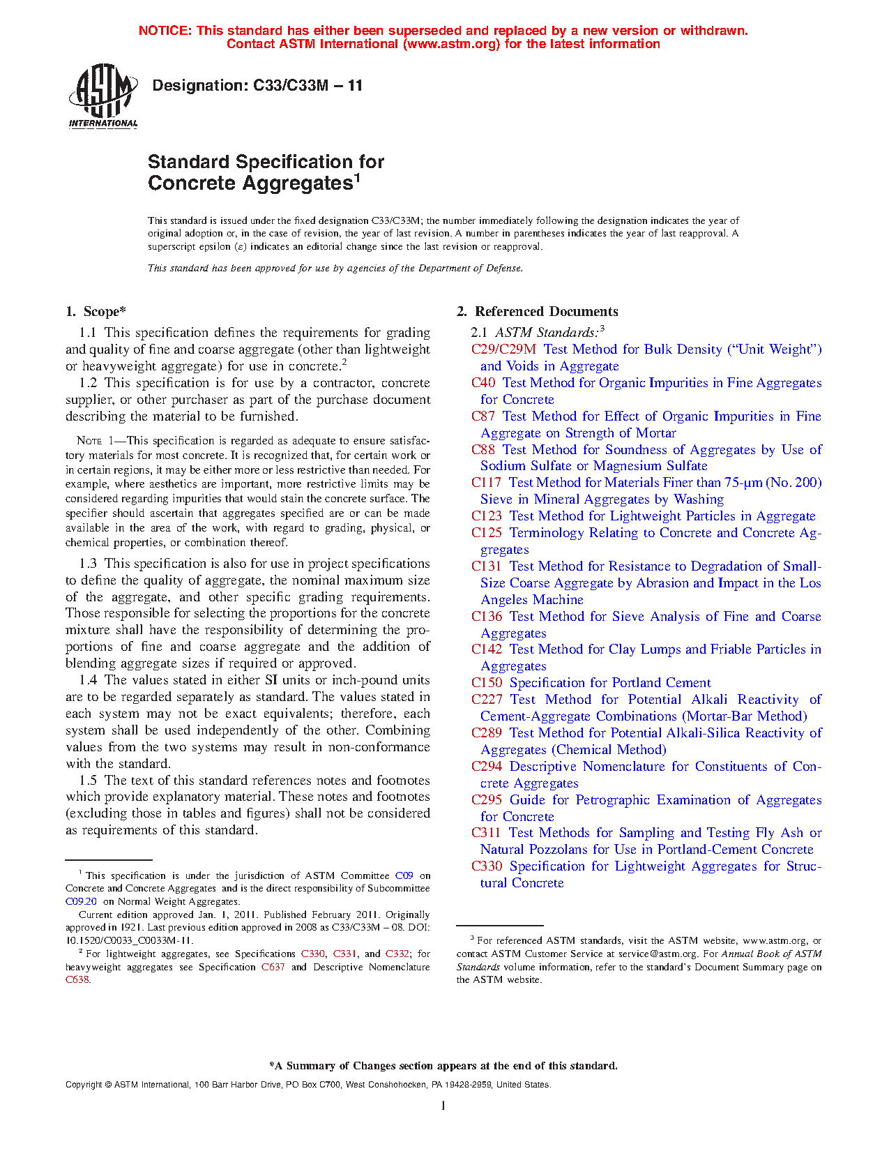 1.1 This specification defines the requirements for grading and quality of fine and coarse aggregate (other than lightweight or heavyweight aggregate) for use in concrete.2