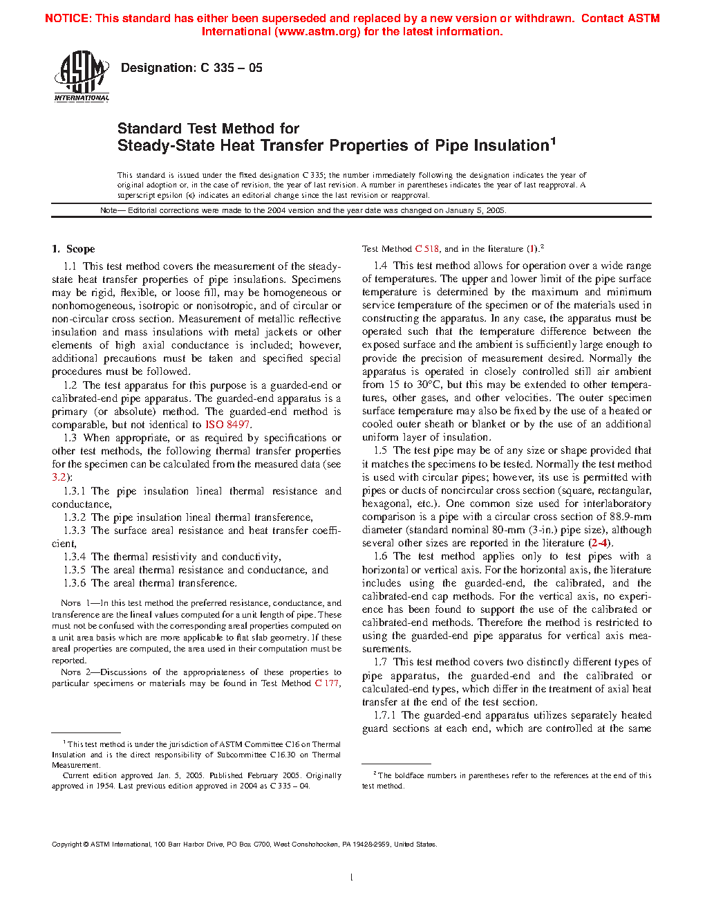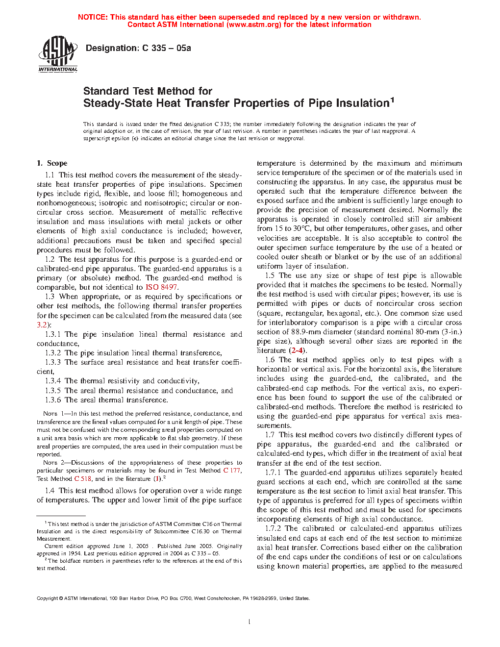 1.6 This test method covers two distinctly different types of pipe apparatus, the guarded-end and the calibrated or calculated-end types, which differ in the treatment of axial heat transfer at the end of the test section.