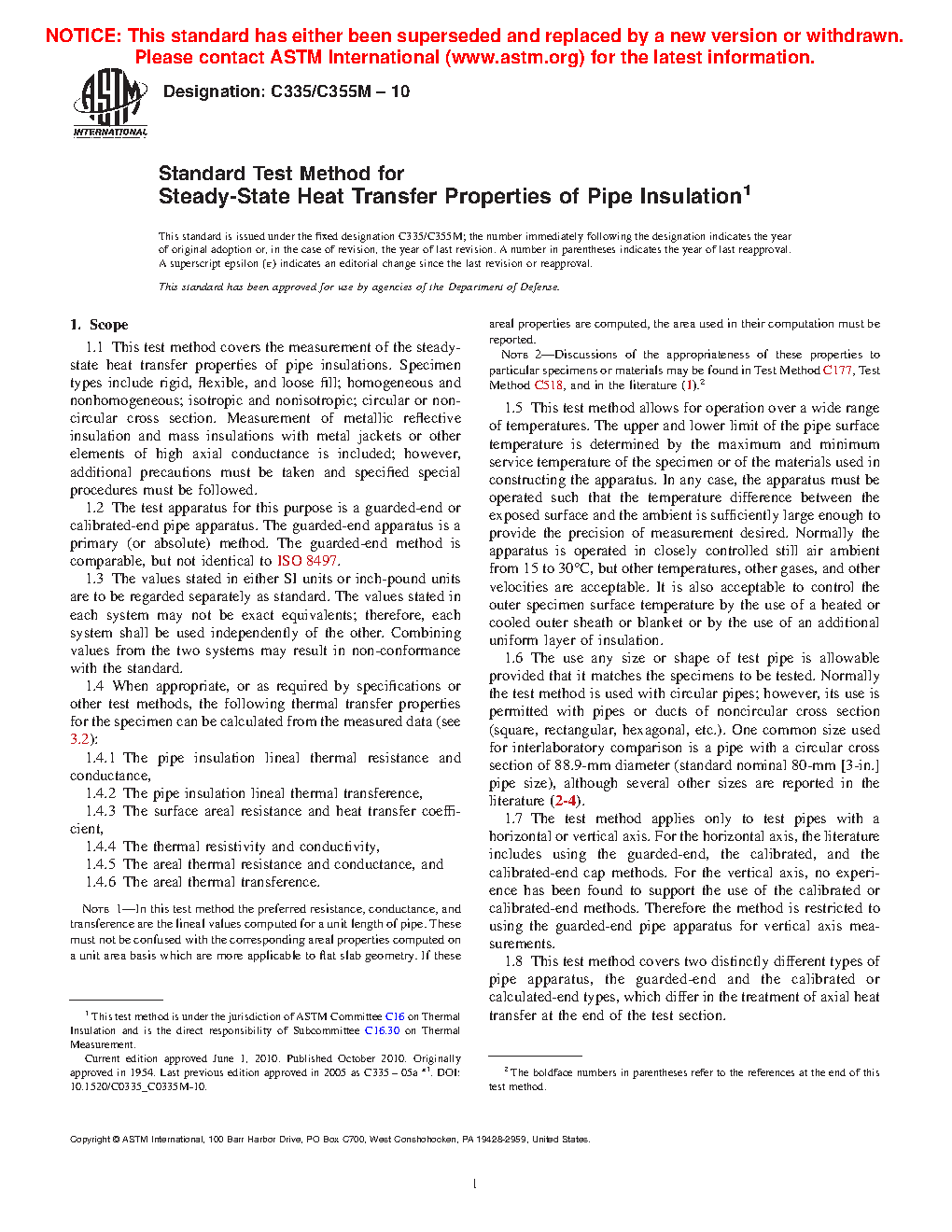 1.8 This test method covers two distinctly different types of pipe apparatus, the guarded-end and the calibrated or calculated-end types, which differ in the treatment of axial heat transfer at the end of the test section.