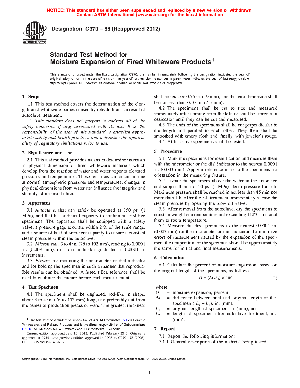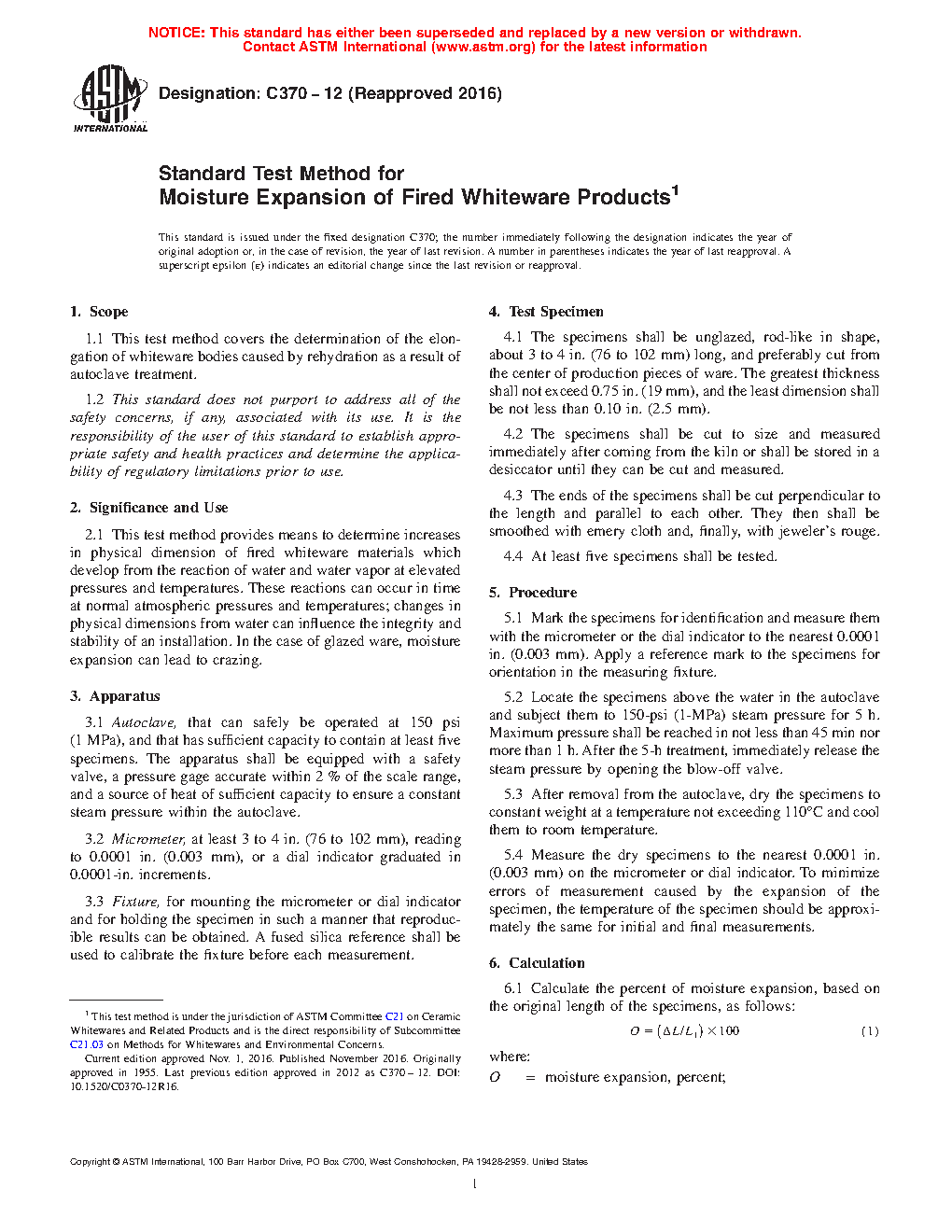 ASTM C370-12(2020)