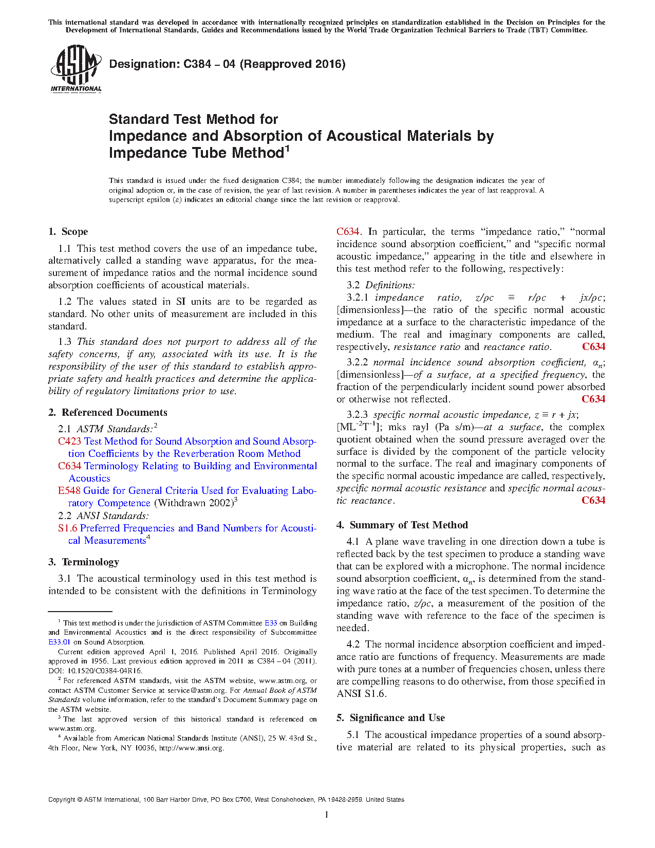 5.1 The acoustical impedance properties of a sound absorptive material are related to its physical properties, such as airflow resistance, porosity, elasticity, and density. As such, the measurements described in this test method are useful in basic research and product development of sound absorptive materials.