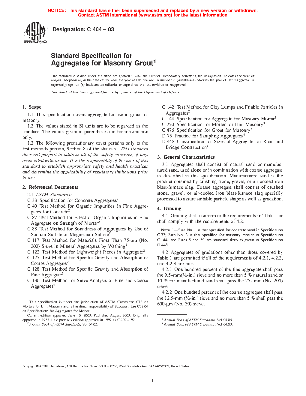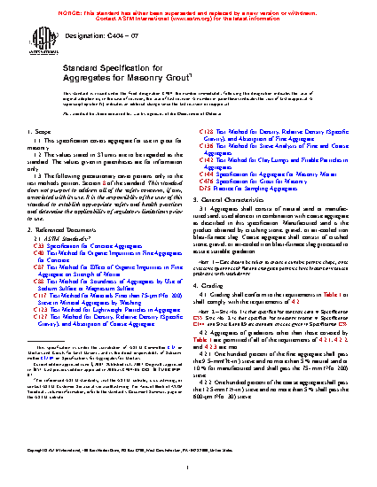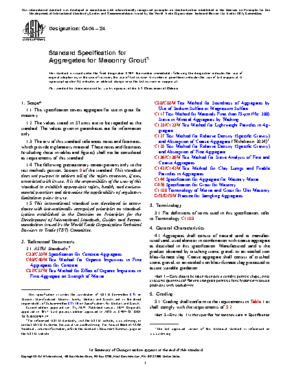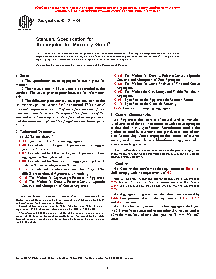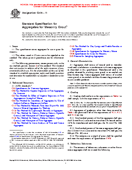 1.1 This specification covers aggregate for use in grout for masonry.