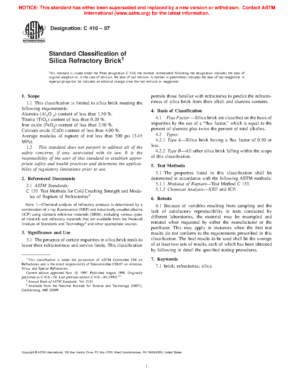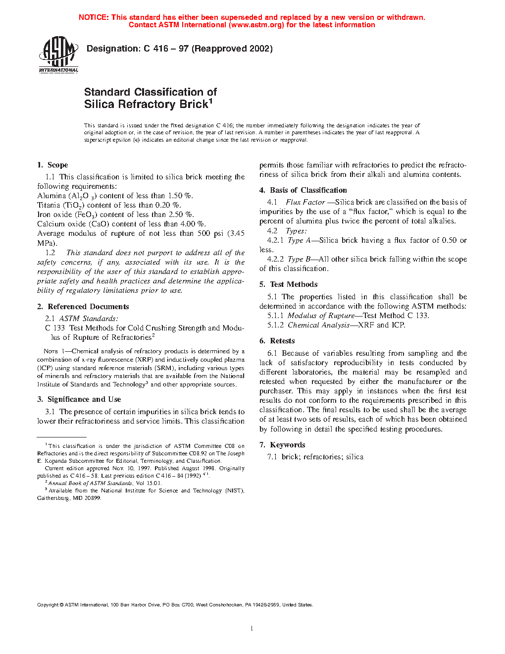 1.1 This classification is limited to silica brick meeting the following requirements:
