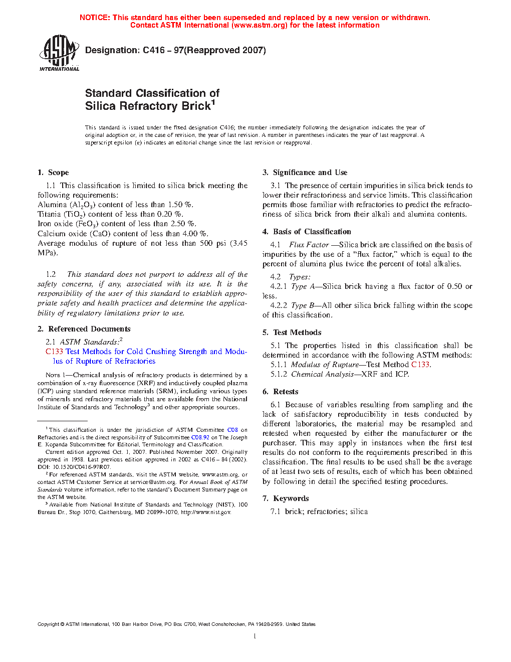 1.1 This classification is limited to silica brick meeting the following requirements: