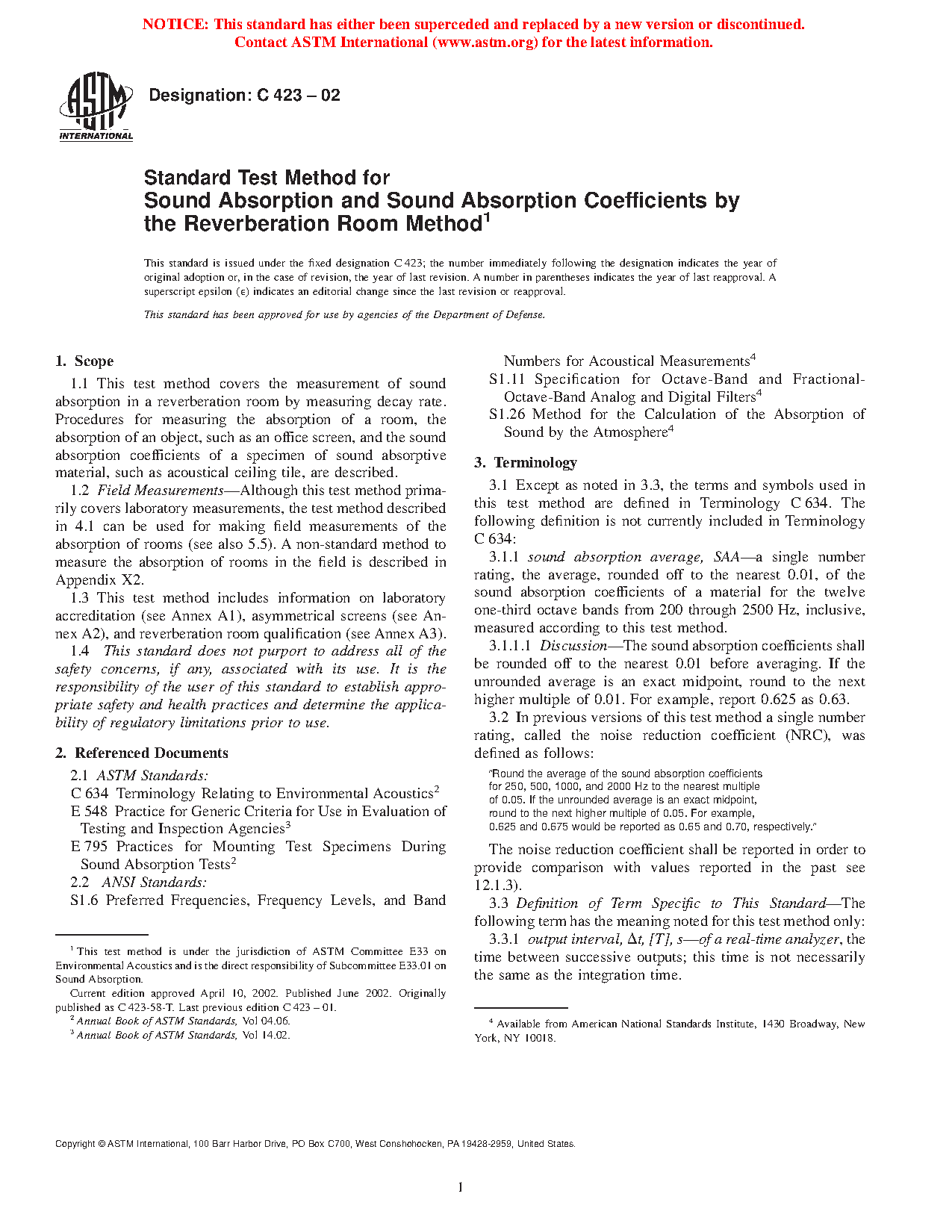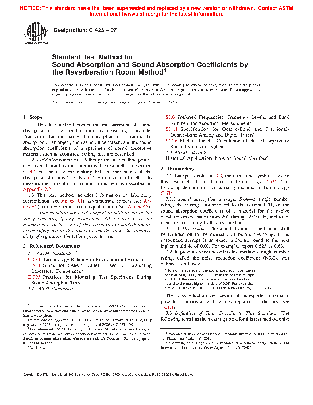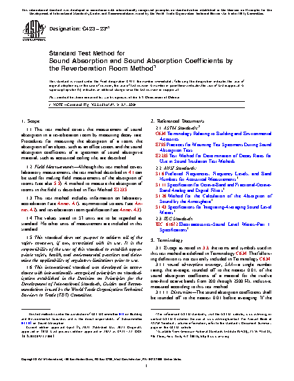 1.3 This test method includes information on laboratory accreditation (see Annex A1), asymmetrical screens (see Annex A2), and reverberation room qualification (see Annex A3).