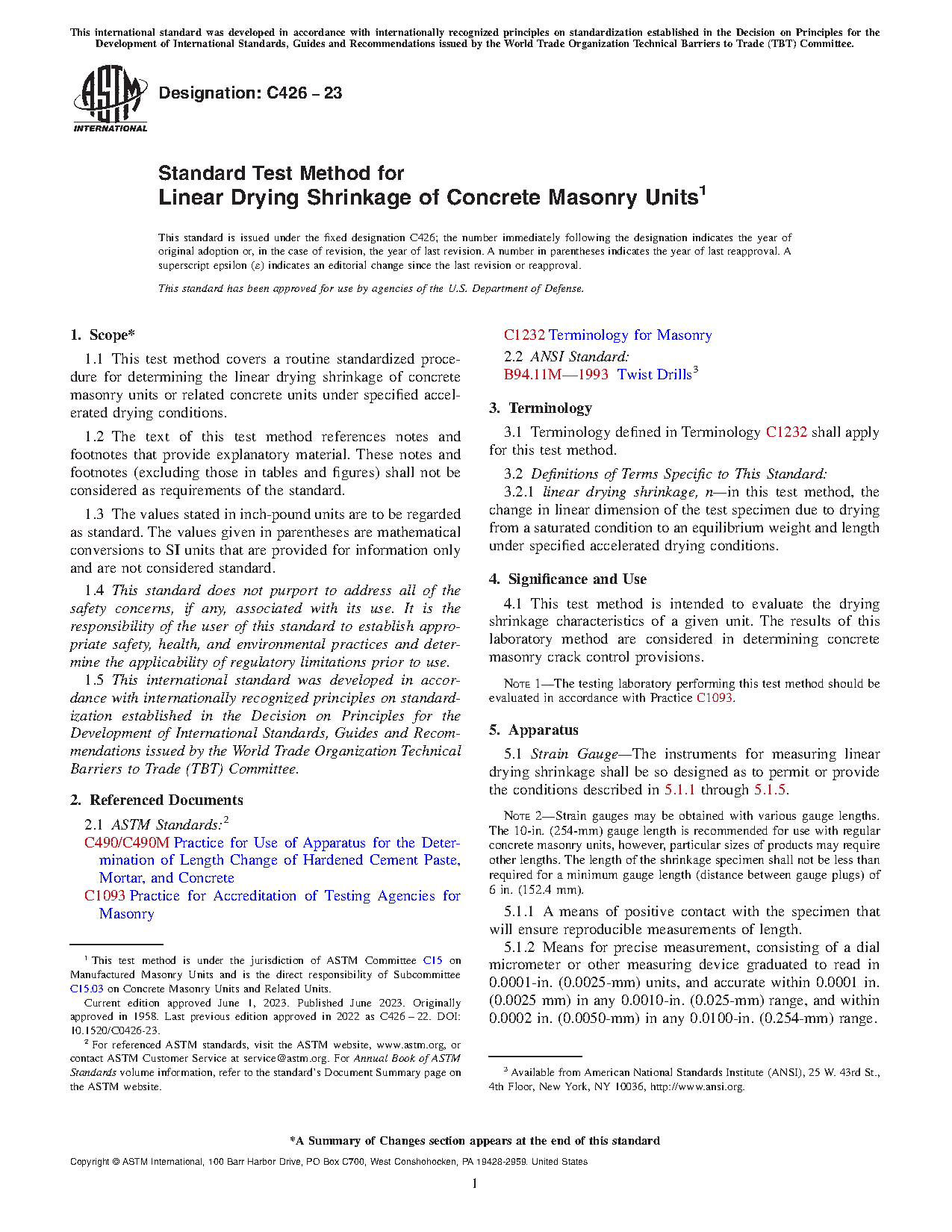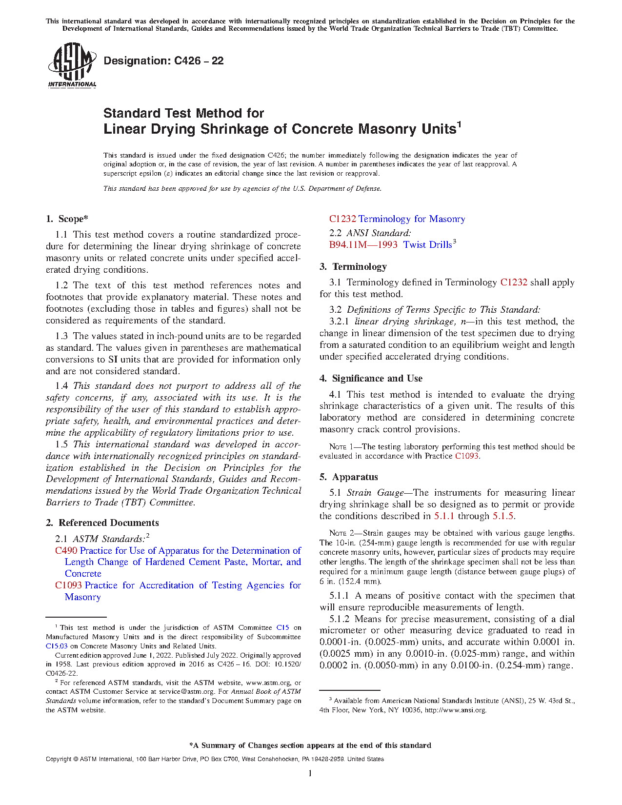 Standard Test Method for Linear Drying Shrinkage of Concrete Masonry Units