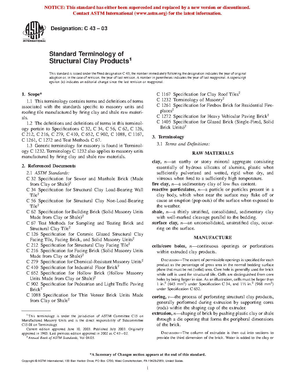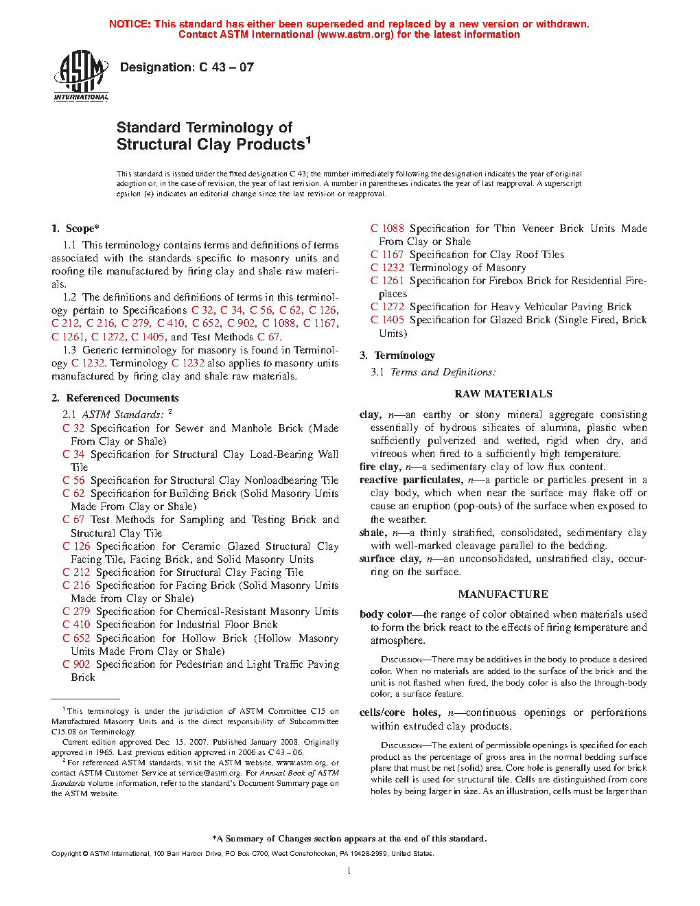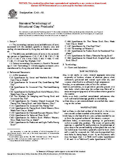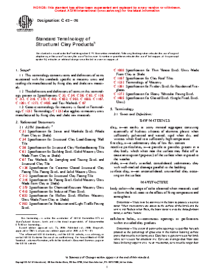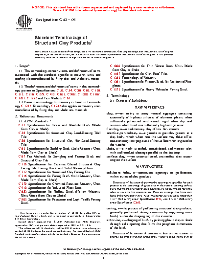 1.2 The definitions and definitions of terms in this terminology pertain to Specifications C32, C34, C56, C62, C126, C212, C216, C279, C410, C652, C902, C1088, C1167, C1261, C1272 and Test Methods C67.
