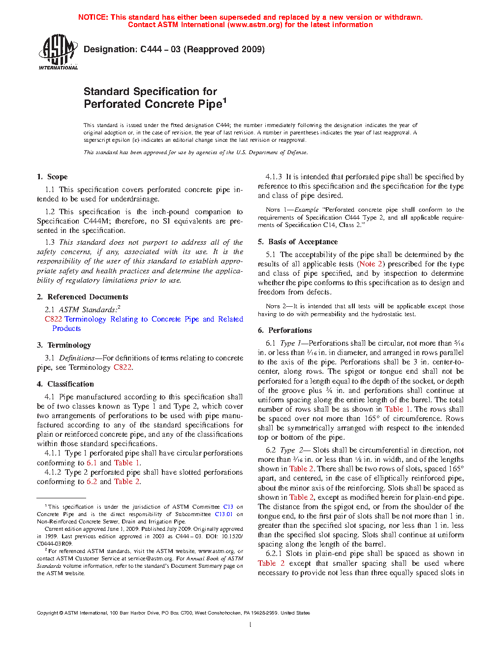 1.1 This specification covers perforated concrete pipe intended to be used for underdrainage.