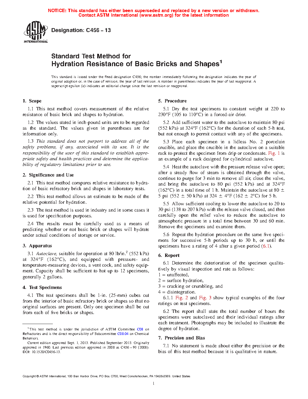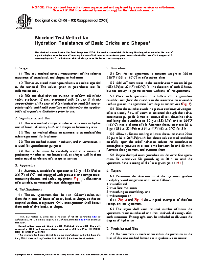 2.4 The results must be carefully used as a means of predicting whether or not basic brick or shapes will hydrate under actual conditions of storage or service.