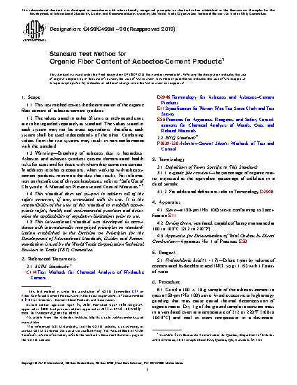 1.1 This test method covers the determination of the organic fiber content of asbestos-cement products.