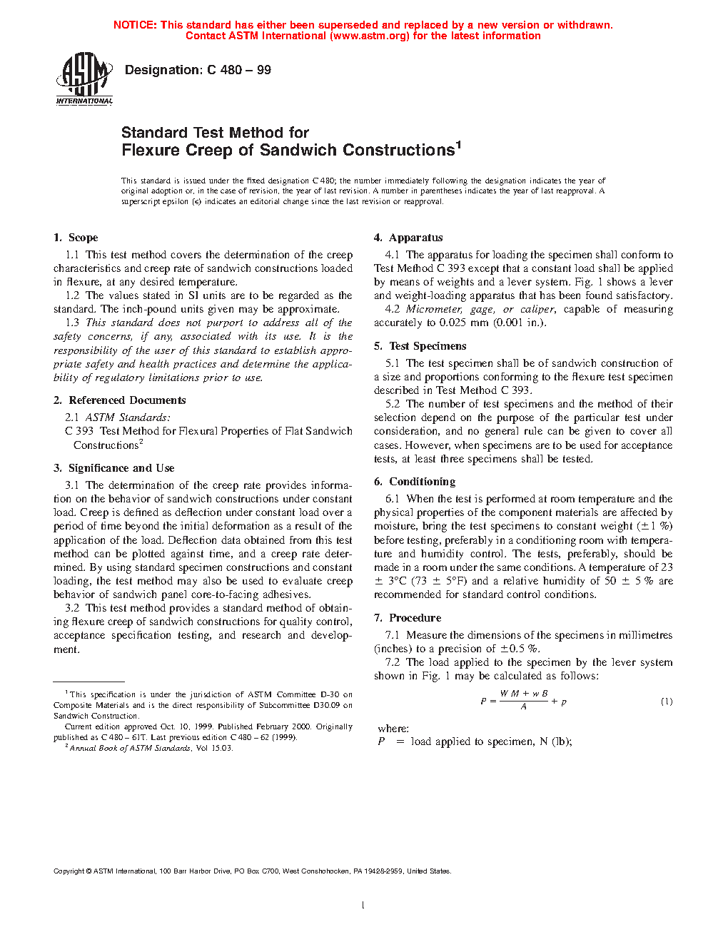 This test method provides a standard method of obtaining flexure creep of sandwich constructions for quality control, acceptance specification testing, and research and development.