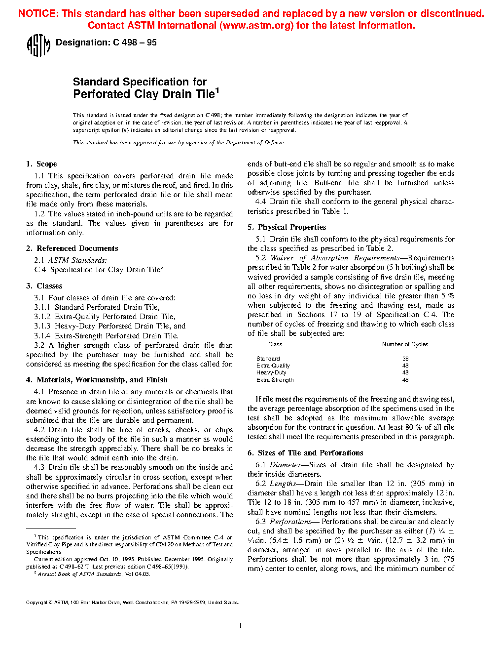 Standard Specification for Perforated Clay Drain Tile (Withdrawn 2001)