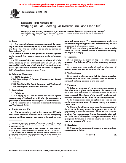 4.2 Excessive wedging presents difficulties in the installation of tile. This test method provides a means for determining the degree of wedging.