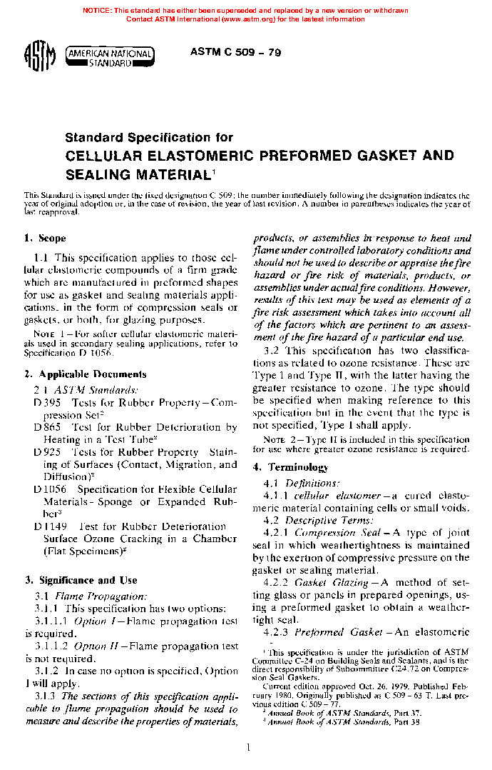 Note 1—For softer cellular elastomeric materials used in secondary sealing applications, refer to Specification D 1056.