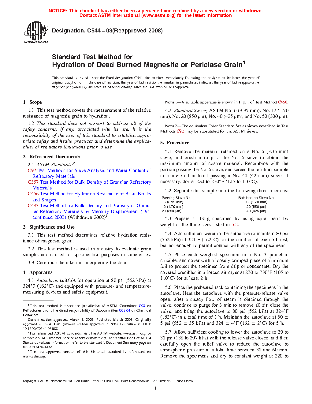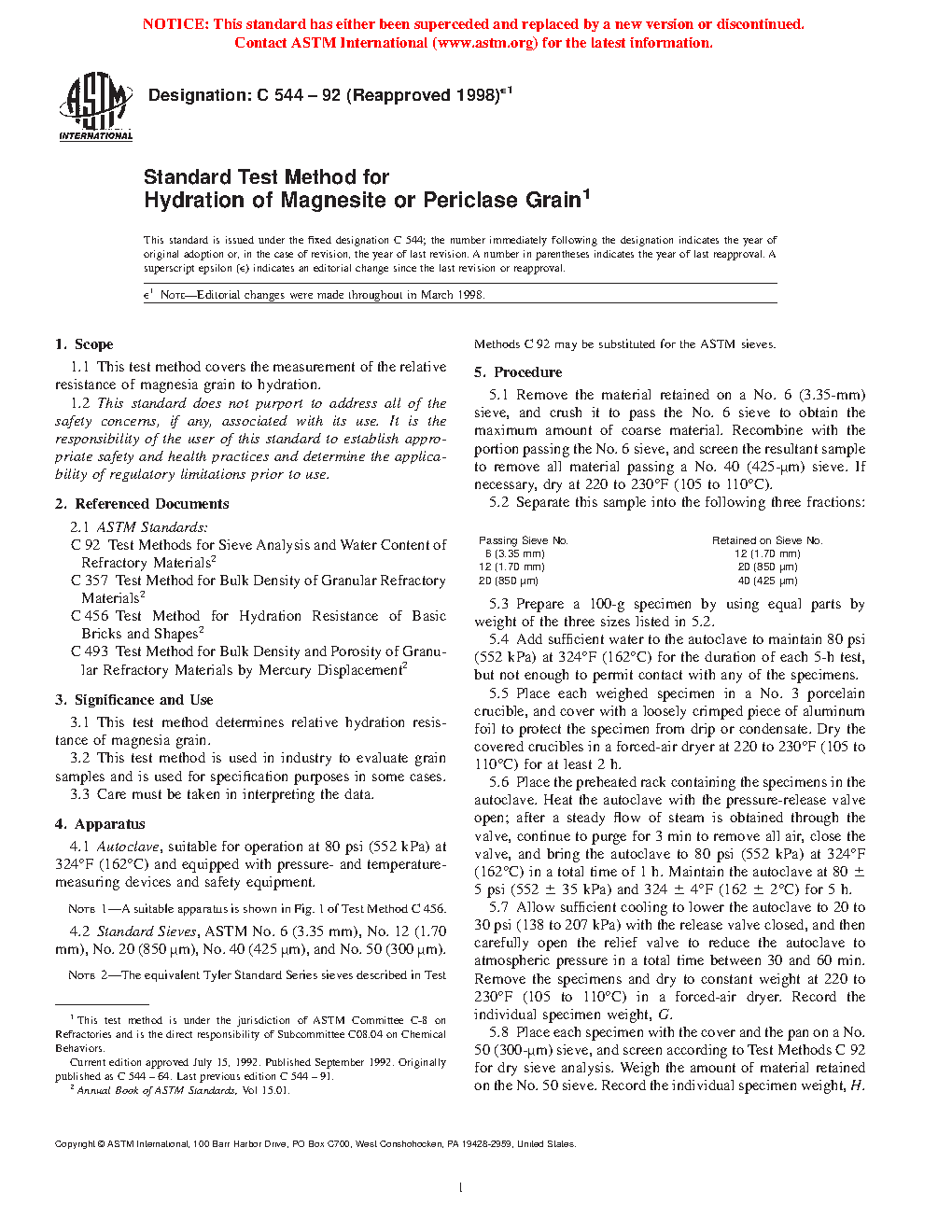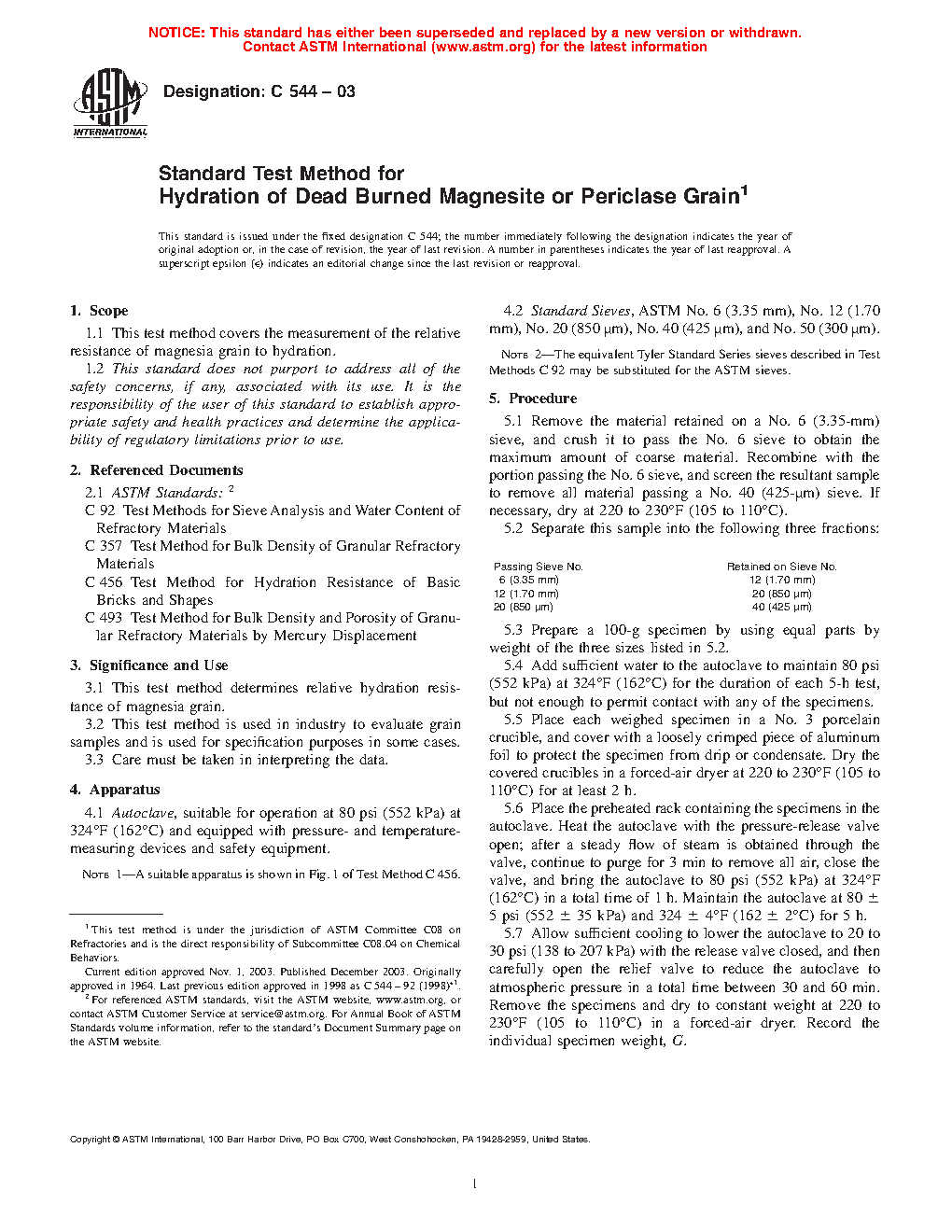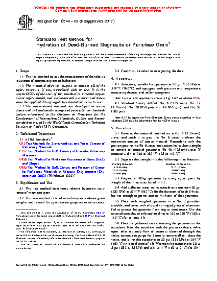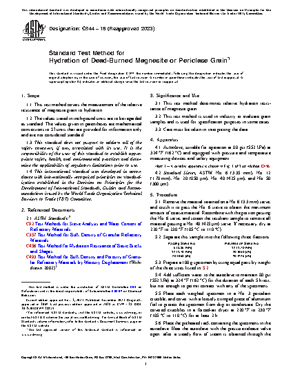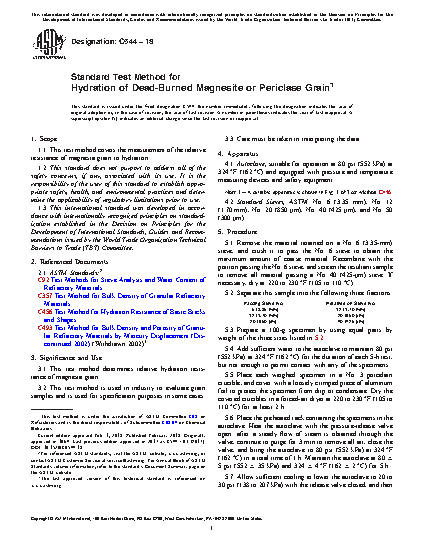 3.1 This test method determines relative hydration resistance of magnesia grain.
