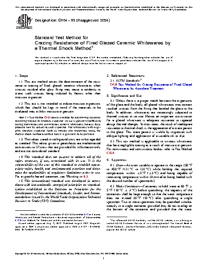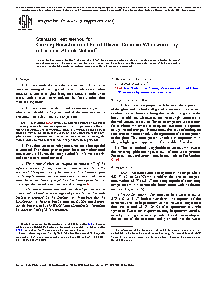 1.1 This test method covers the determination of the resistance to crazing of fired, glazed, ceramic whitewares when stresses residual after glost firing may cause a tendency to craze, such stresses being induced by factors other than moisture expansion.