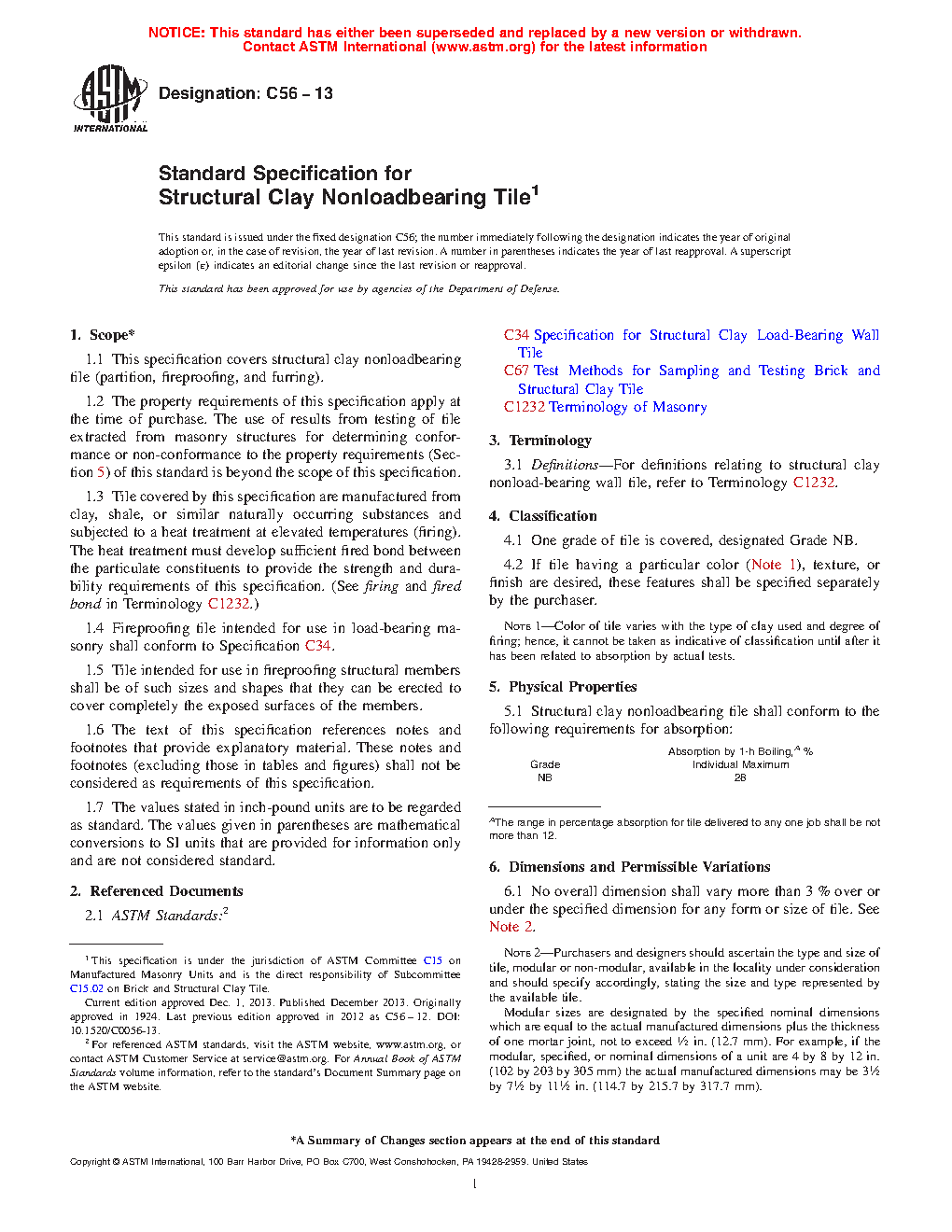 1.2 The property requirements of this specification apply at the time of purchase. The use of results from testing of tile extracted from masonry structures for determining conformance or non-conformance to the property requirements (Section 5) of this standard is beyond the scope of this specification.