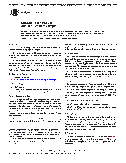 1.1 This test method provides a practical determination for the ash content in a graphite sample.