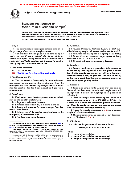 1.1 This test method provides a practical determination for the percentage of moisture in a graphite sample.